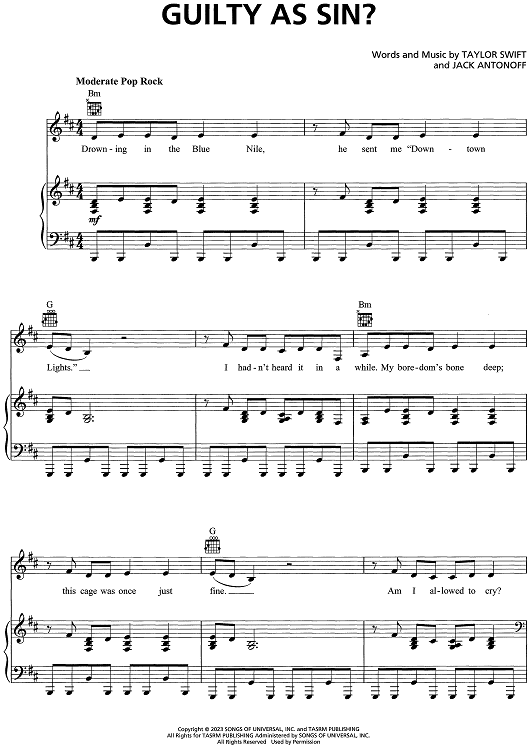 Digital Sheet Music for Guilty as Sin? by Taylor Swift, Jack Antonoff scored for Piano/Vocal/Chords; id:502000