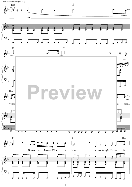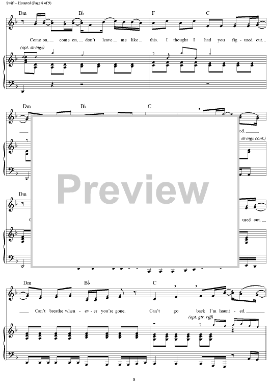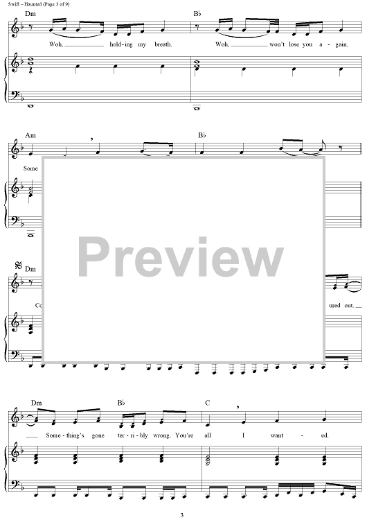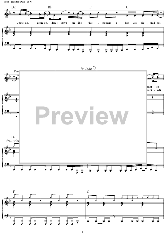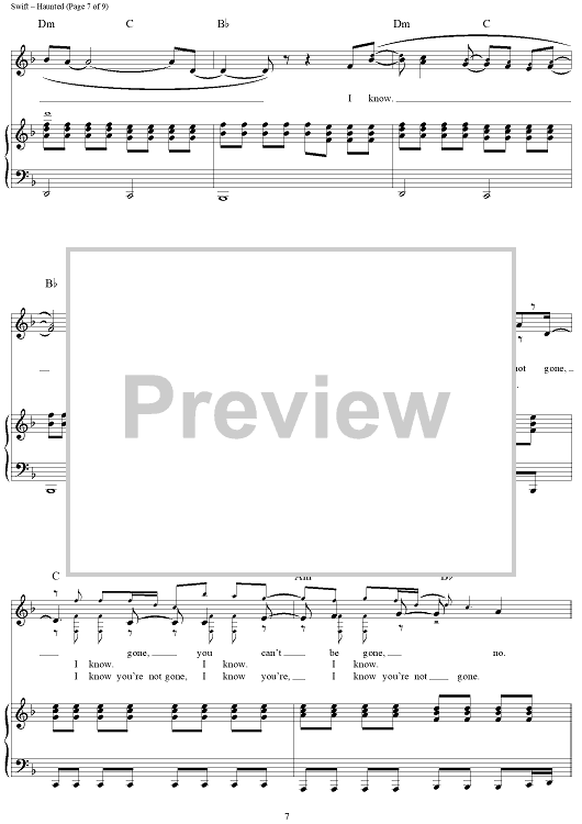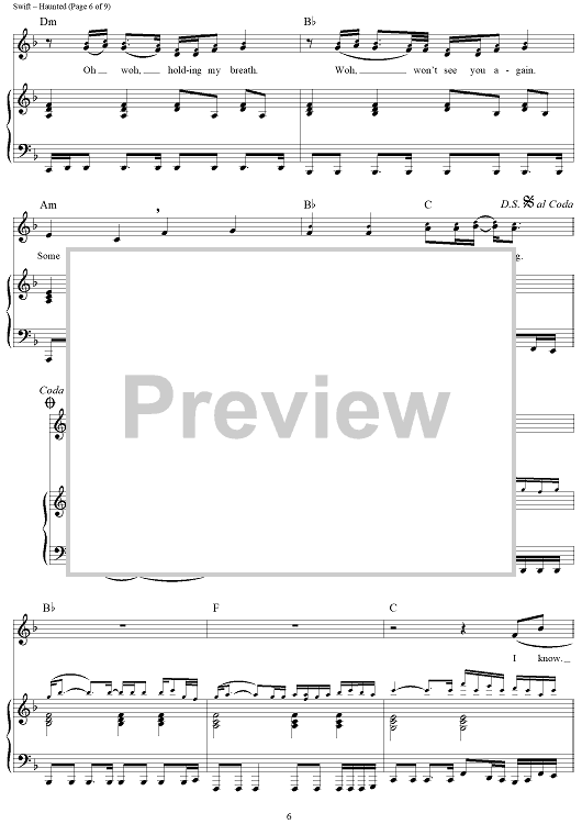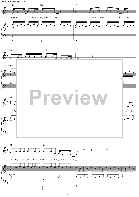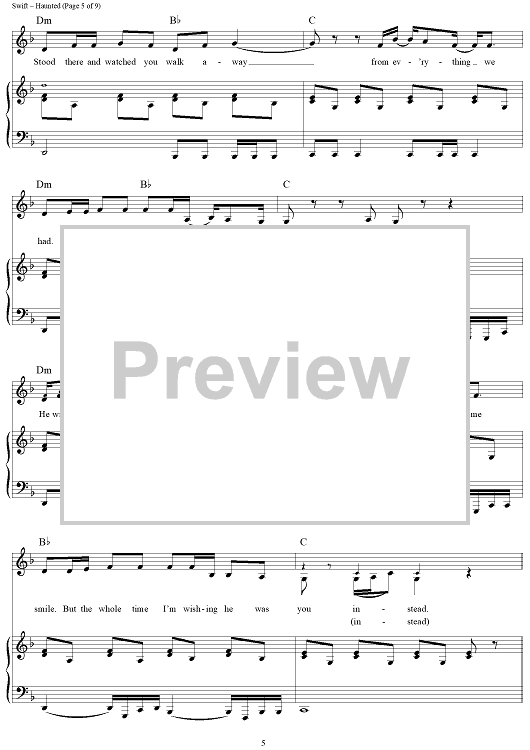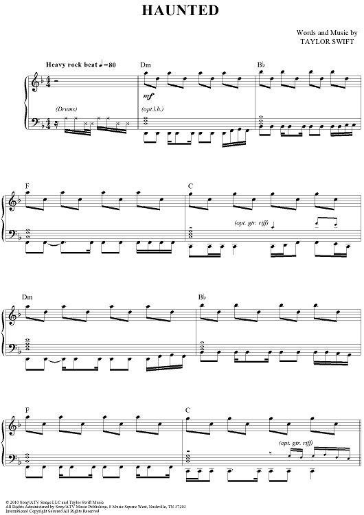 Digital Sheet Music for Haunted by Taylor Swift scored for Piano/Vocal/Chords; id:417649