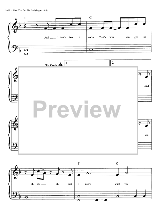 Digital Sheet Music for How You Get the Girl by Max Martin, Taylor Swift, Shellback scored for Big Note Piano; id:457149