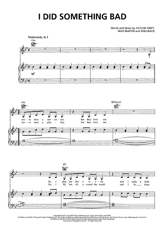Digital Sheet Music for I Did Something Bad by Max Martin, Taylor Swift, Shellback scored for Piano/Vocal/Chords; id:466061
