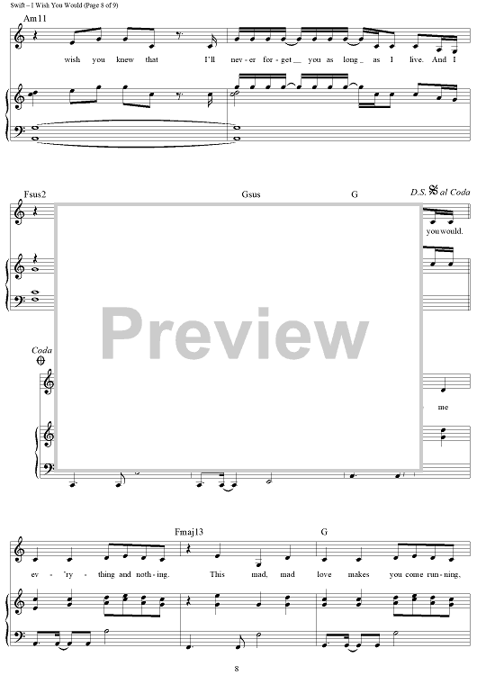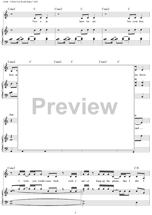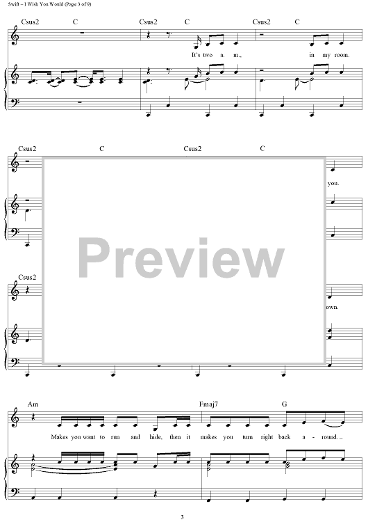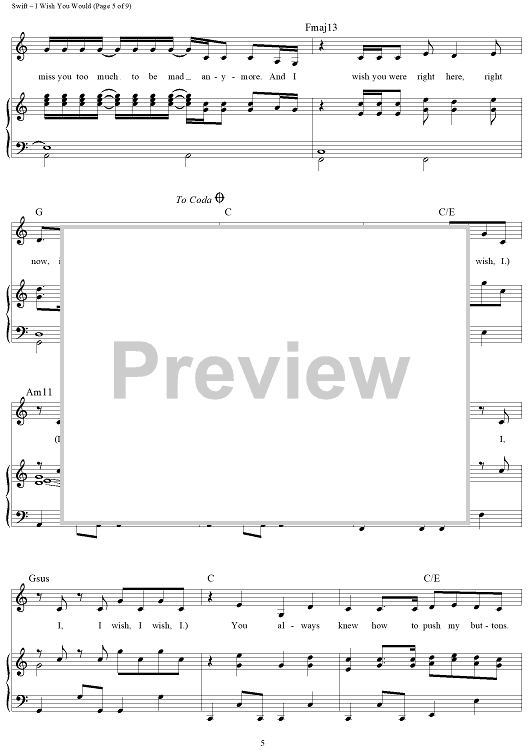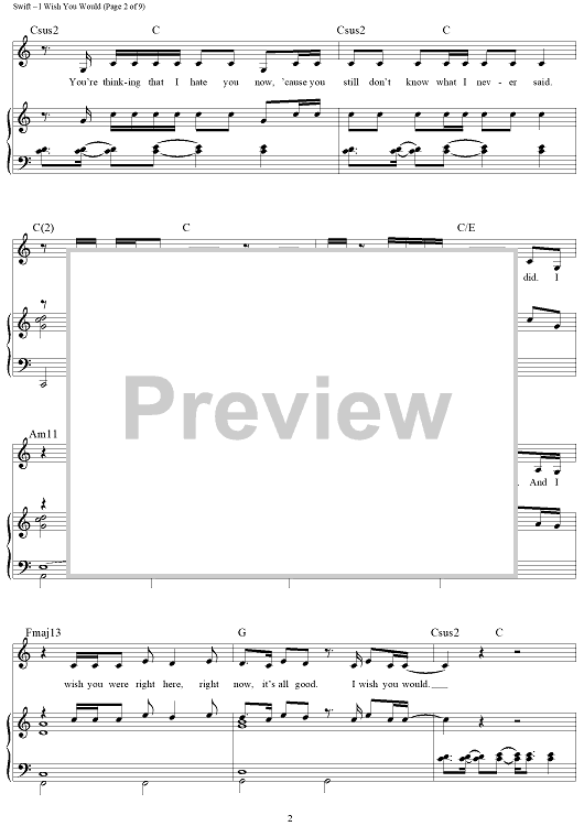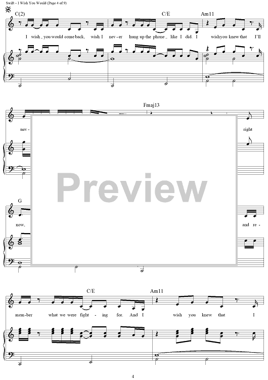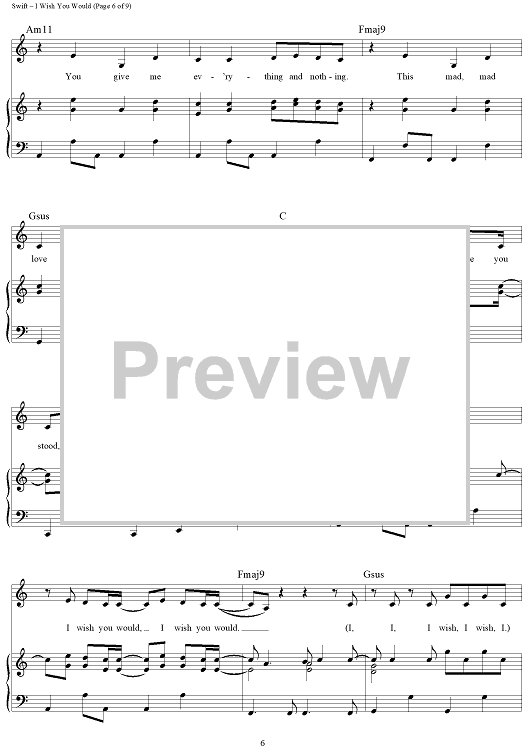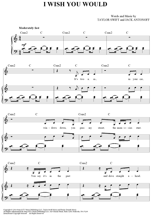 Digital Sheet Music for I Wish You Would by Taylor Swift, Jack Antonoff scored for Piano/Vocal/Chords; id:448091