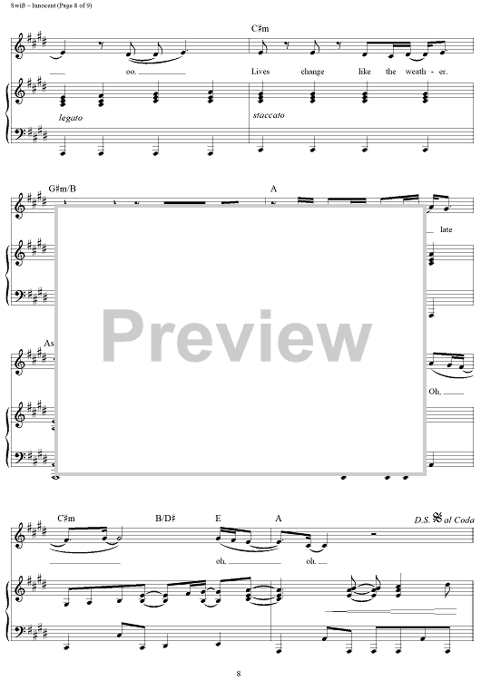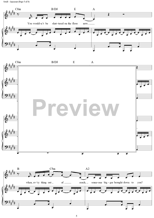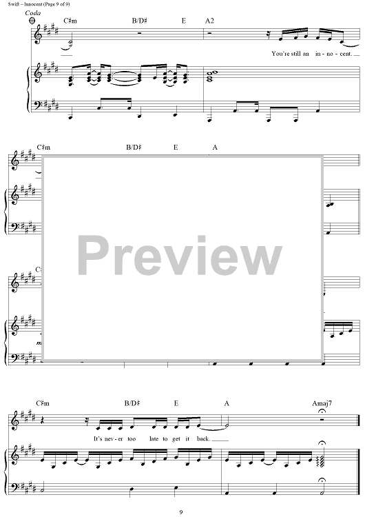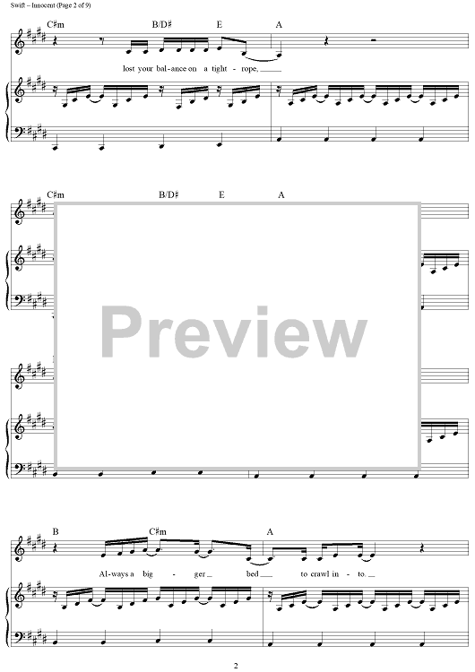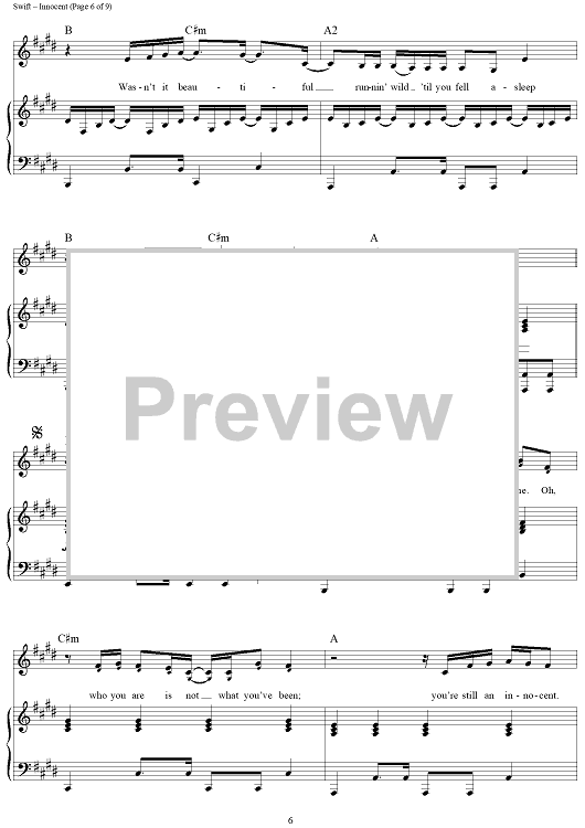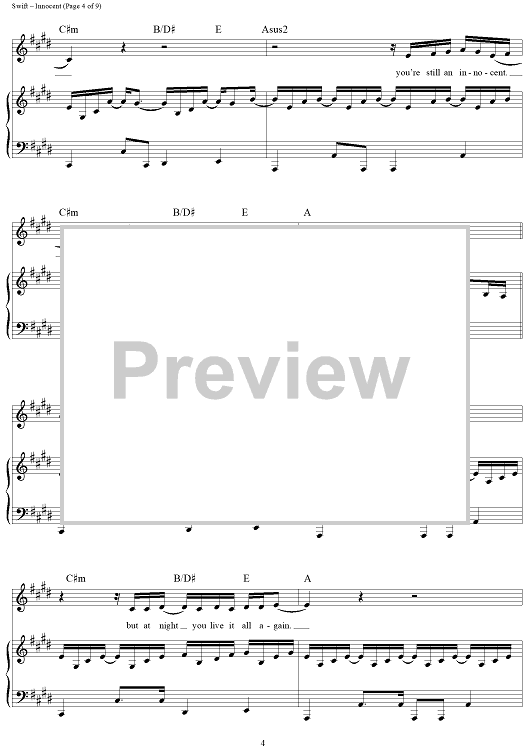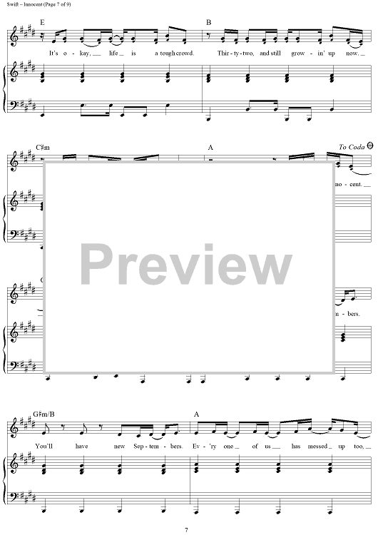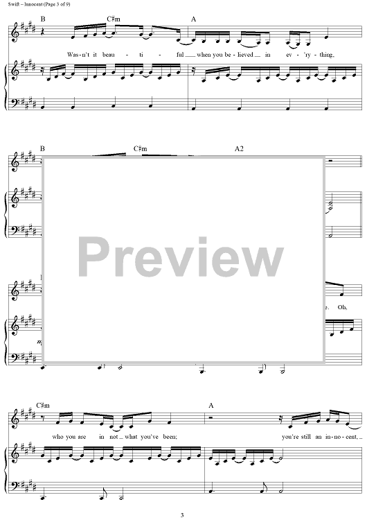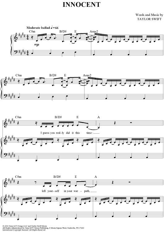 Digital Sheet Music for Innocent by Taylor Swift scored for Piano/Vocal/Chords; id:417650