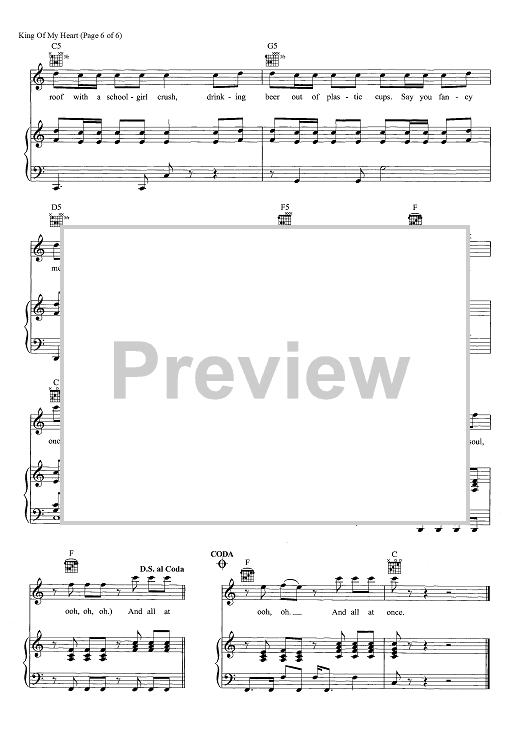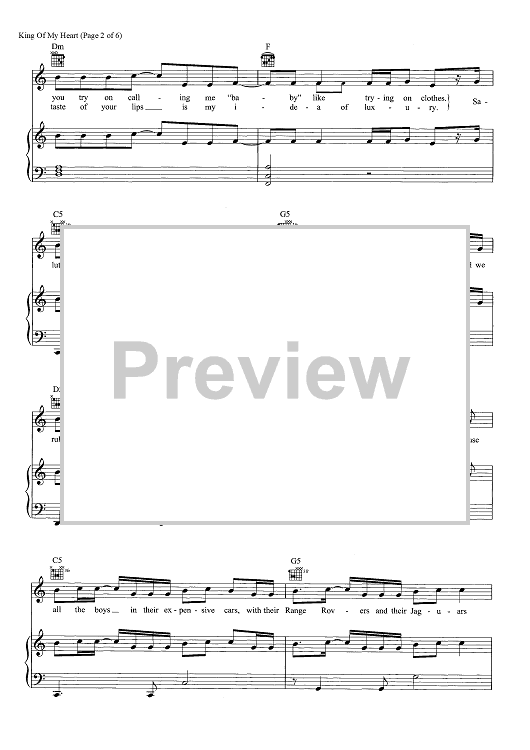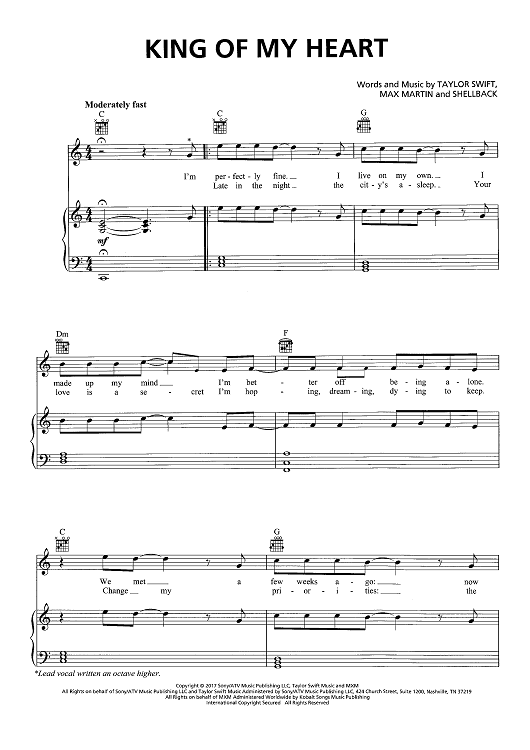 Digital Sheet Music for King Of My Heart by Max Martin, Taylor Swift, Shellback scored for Piano/Vocal/Chords; id:466082