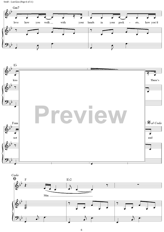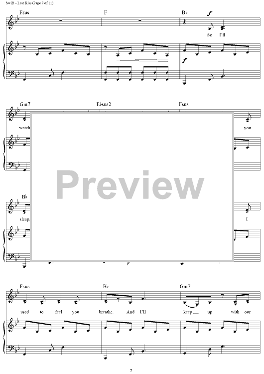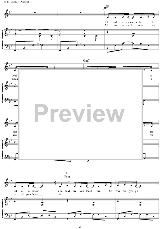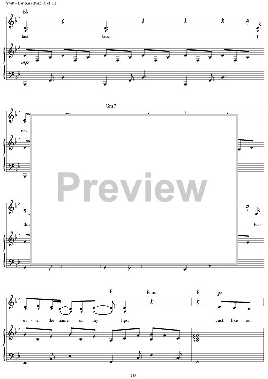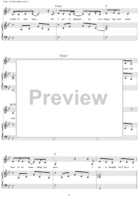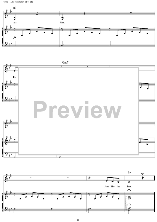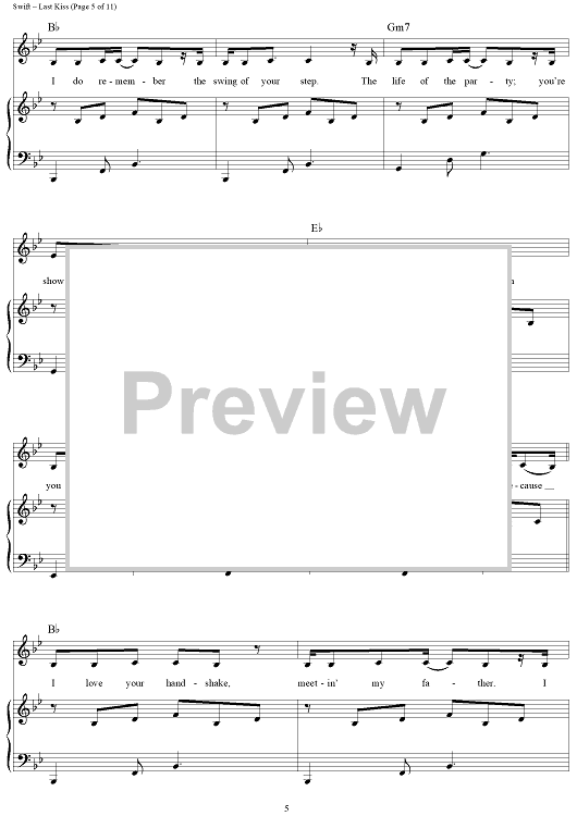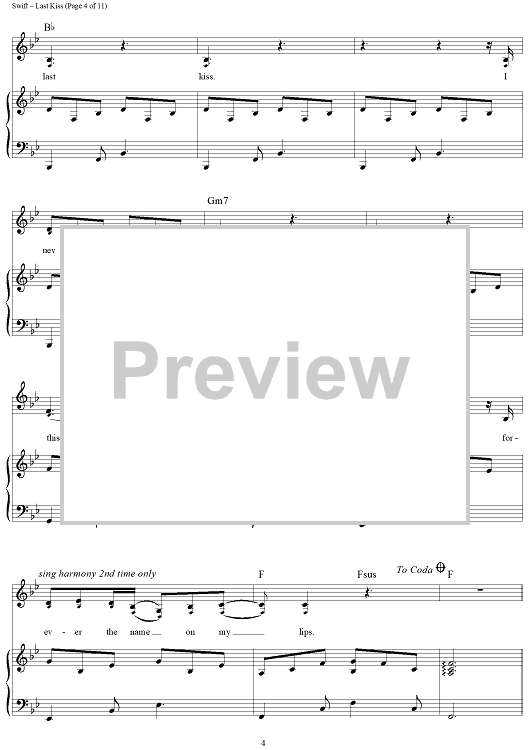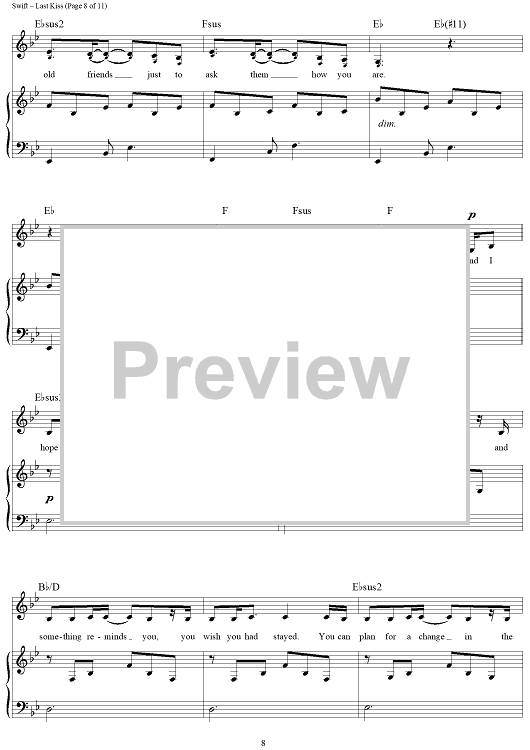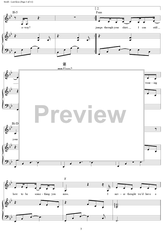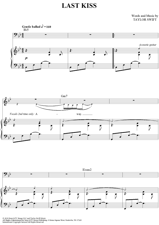 Digital Sheet Music for Last Kiss by Taylor Swift scored for Piano/Vocal/Chords; id:417966