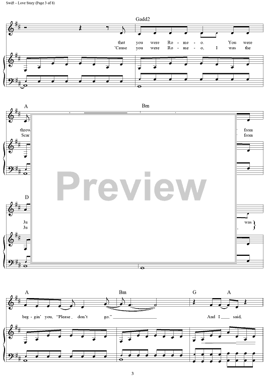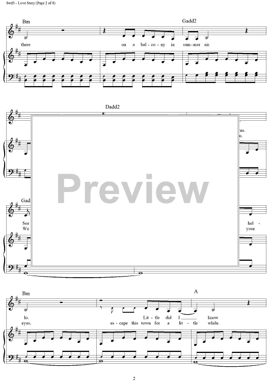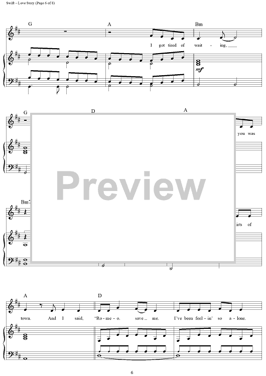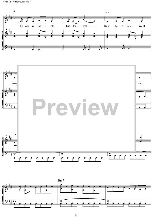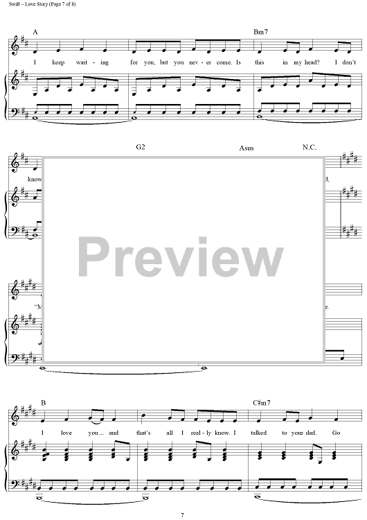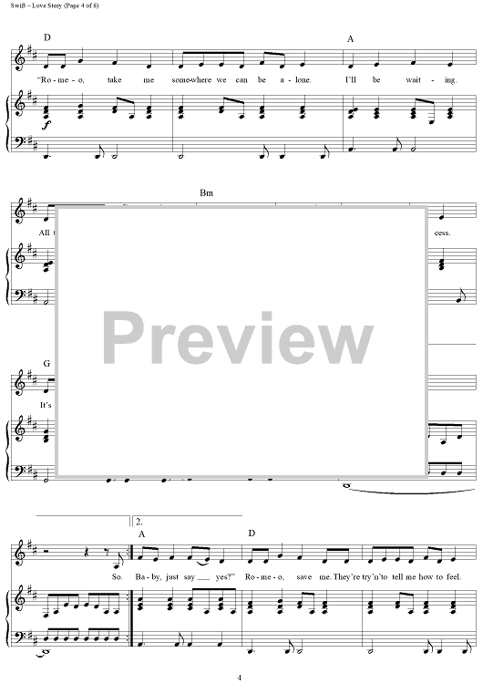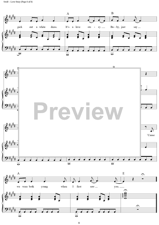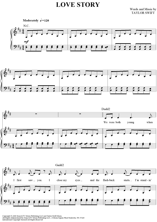Digital Sheet Music for Love Story by Taylor Swift scored for Piano/Vocal/Chords; id:404409