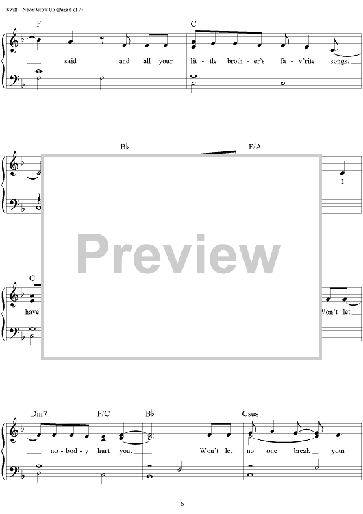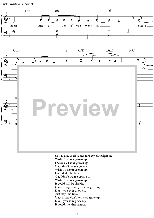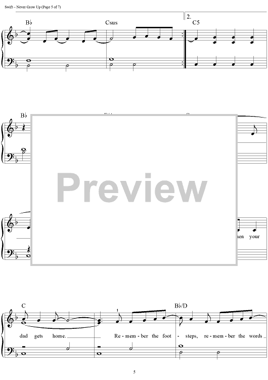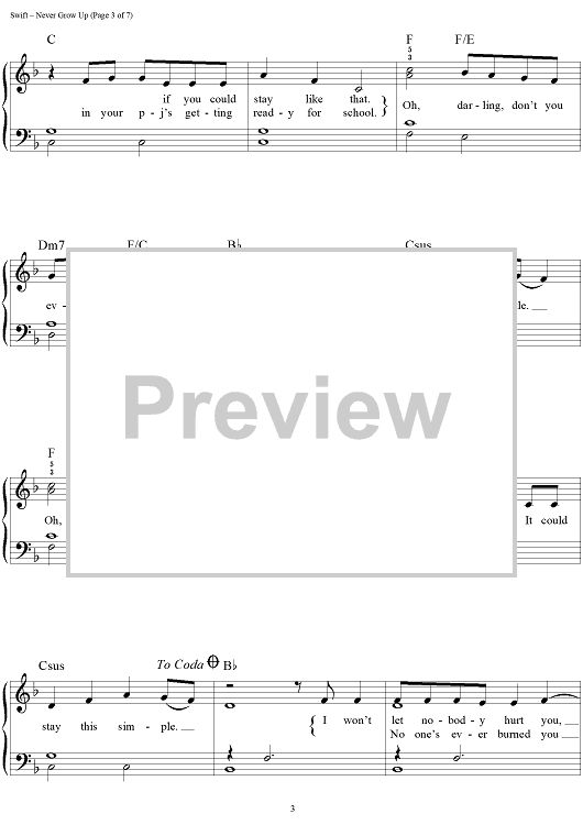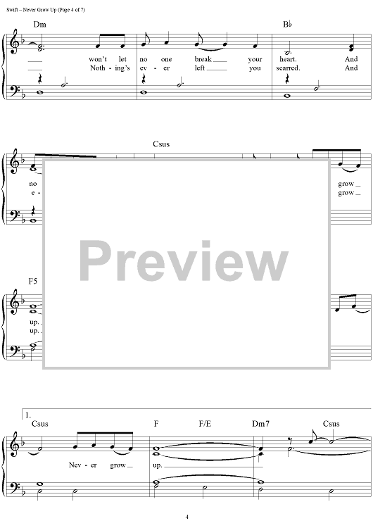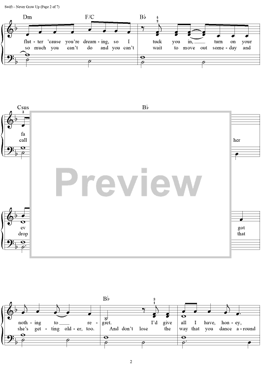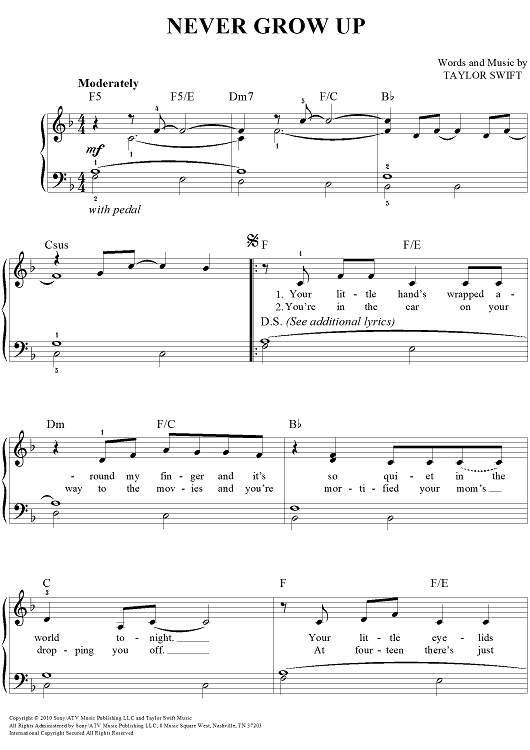 "Never Grow Up" Sheet Music by Taylor Swift