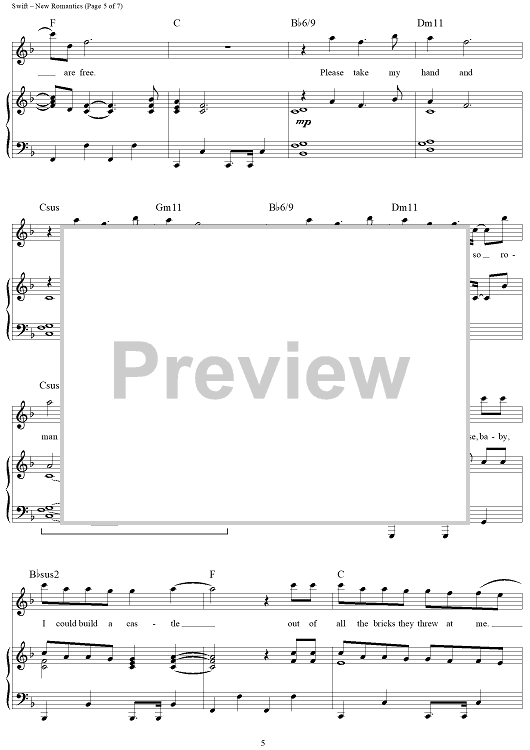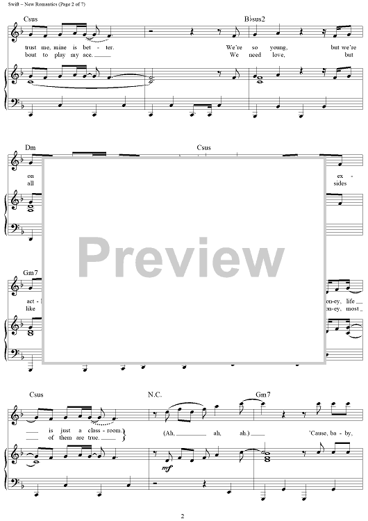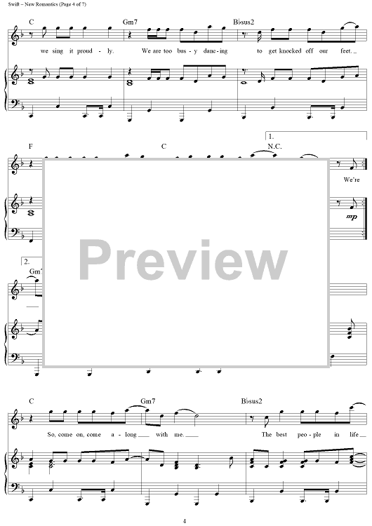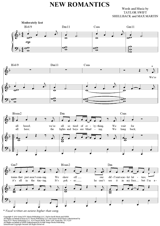 Digital Sheet Music for New Romantics by Max Martin, Taylor Swift, Shellback scored for Piano/Vocal/Chords; id:453230