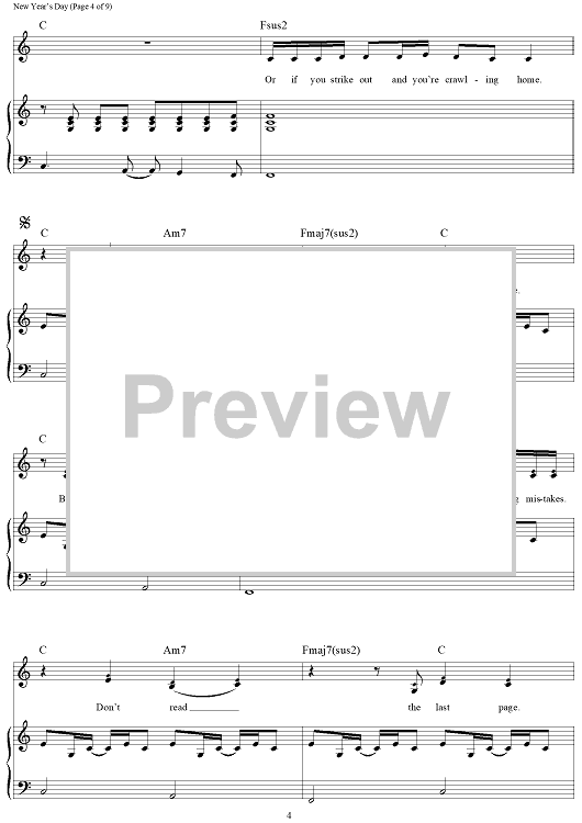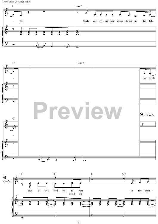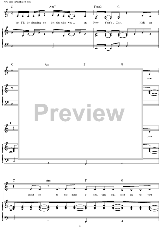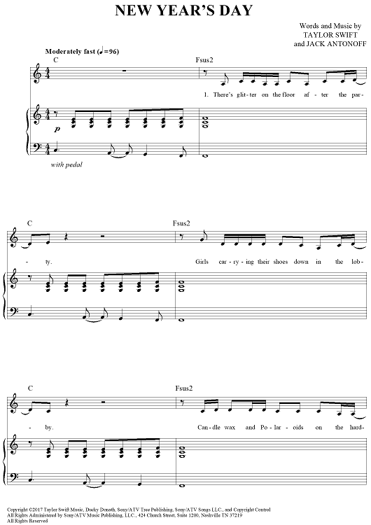 "New Year's Day" Sheet Music by Taylor Swift
