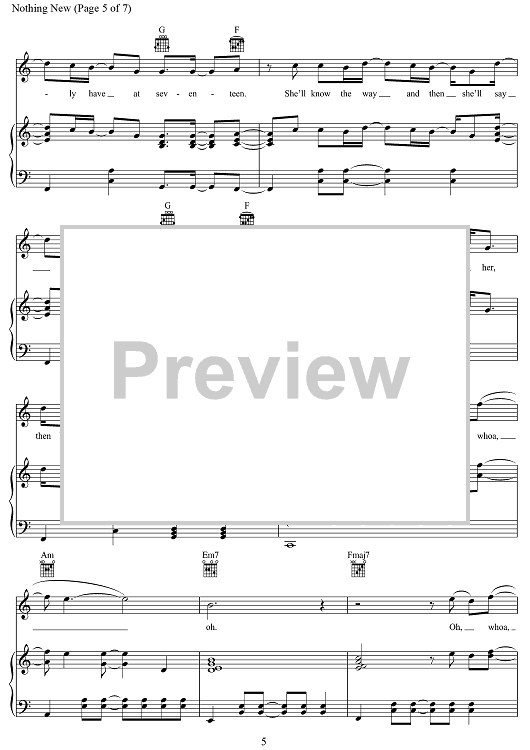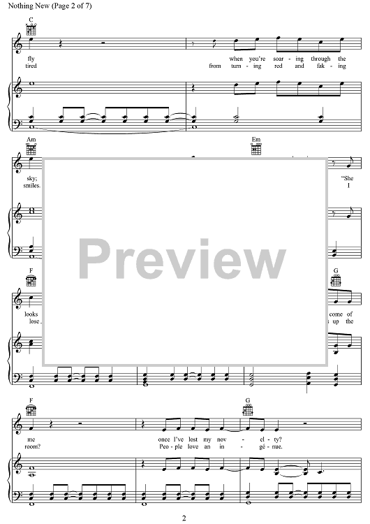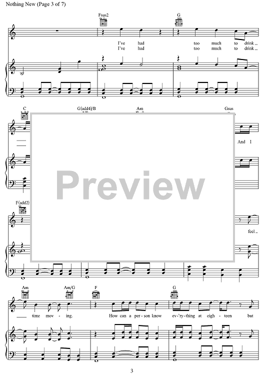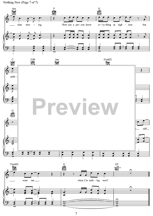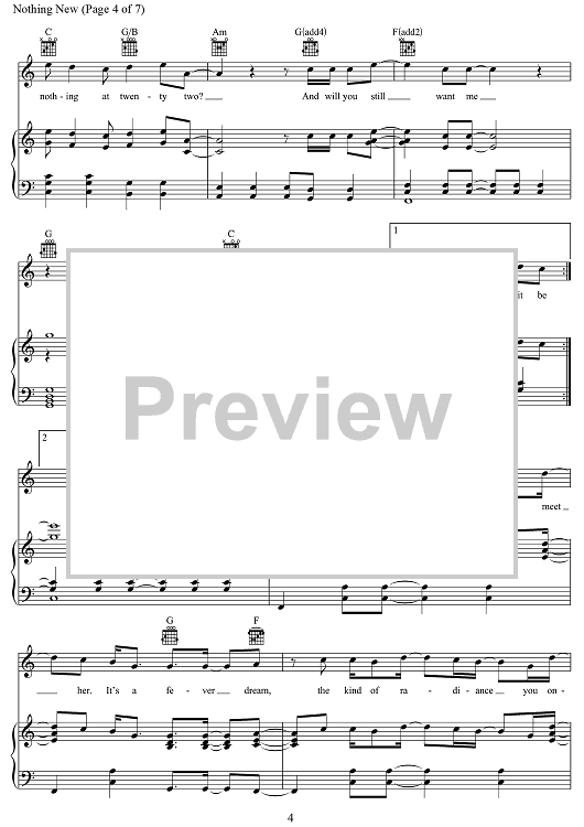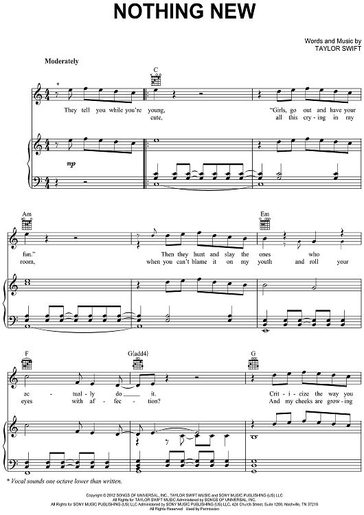 Digital Sheet Music for Nothing New by Taylor Swift scored for Piano/Vocal/Chords; id:470039
