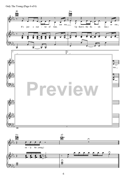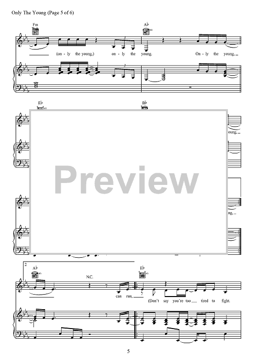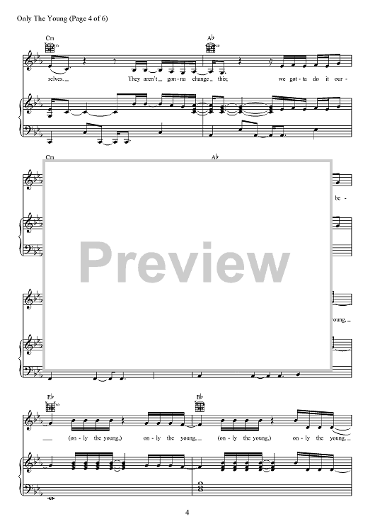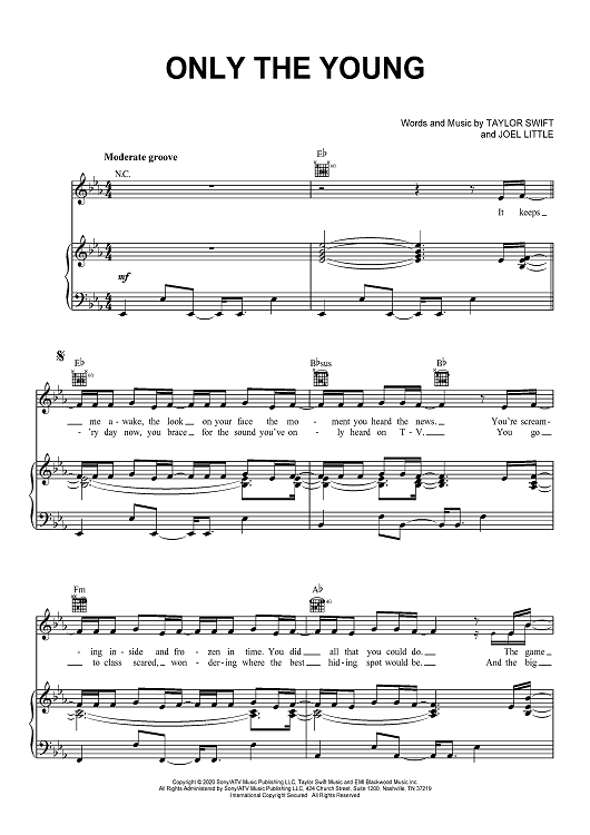 Digital Sheet Music for Only The Young by Taylor Swift, Joel Little scored for Piano/Vocal/Chords; id:467974