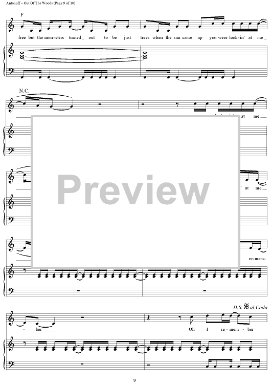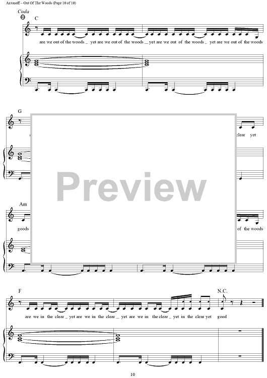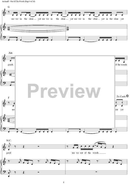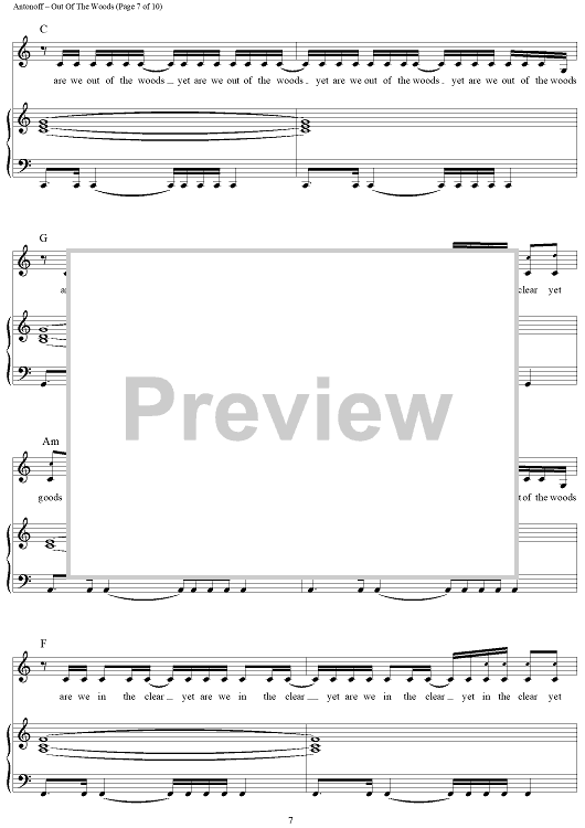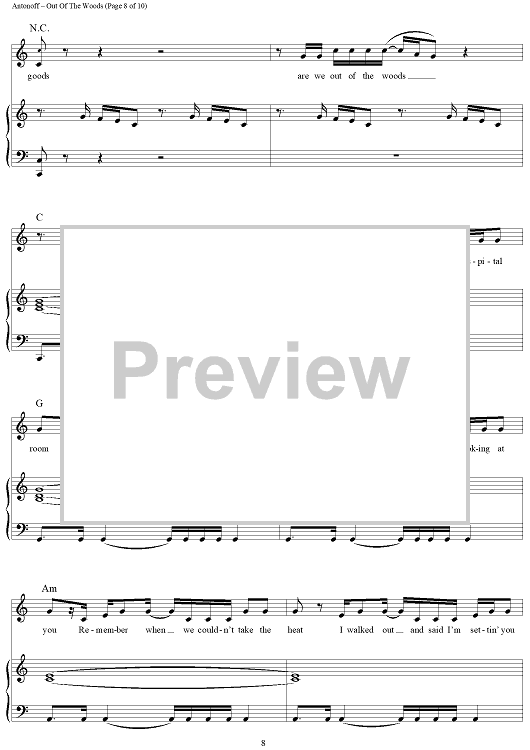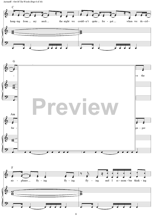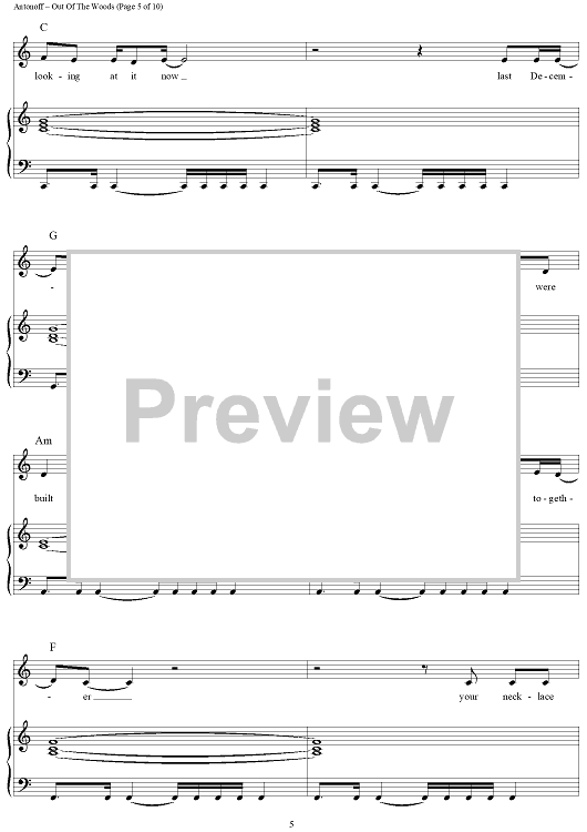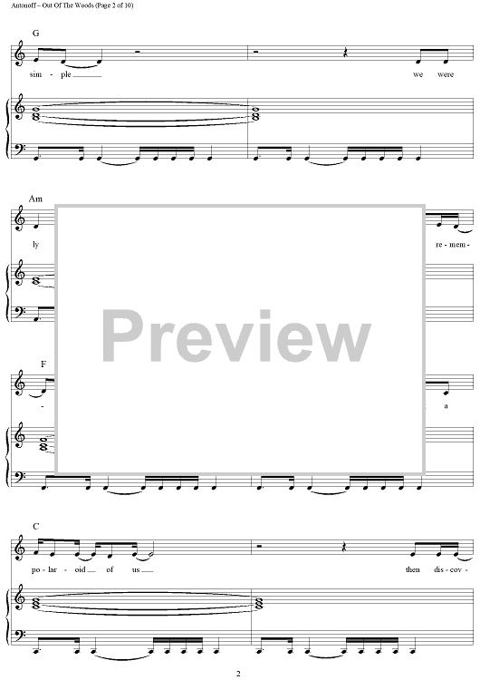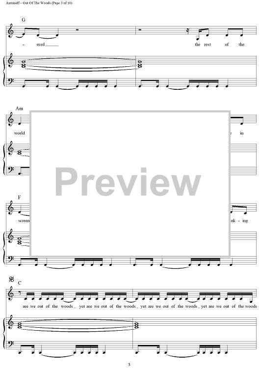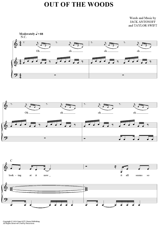 Digital Sheet Music for Out Of The Woods by Taylor Swift, Jack Antonoff scored for Piano/Vocal/Chords; id:444682