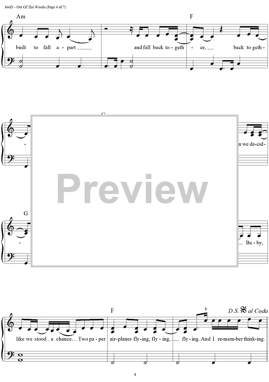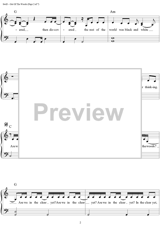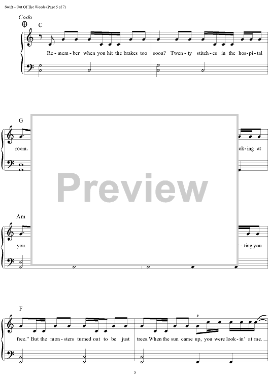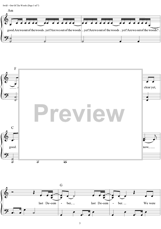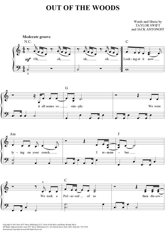 Digital Sheet Music for Out Of The Woods by Taylor Swift, Jack Antonoff scored for Easy Piano/Vocal/Chords; id:460109