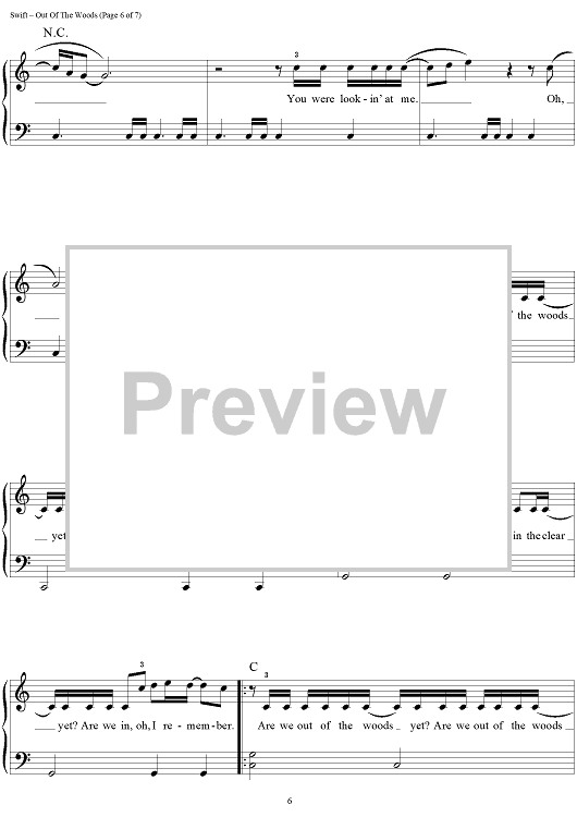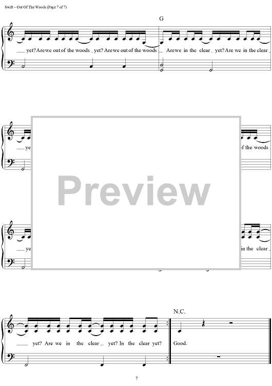 "Out Of The Woods" Sheet Music by Taylor Swift