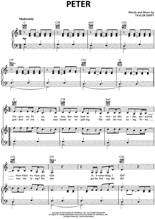Digital Sheet Music for Peter by Taylor Swift scored for Piano/Vocal/Chords; id:502046
