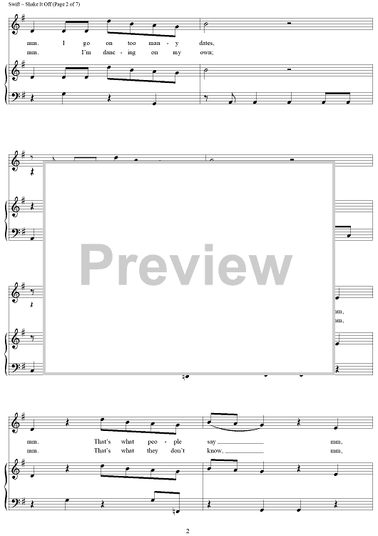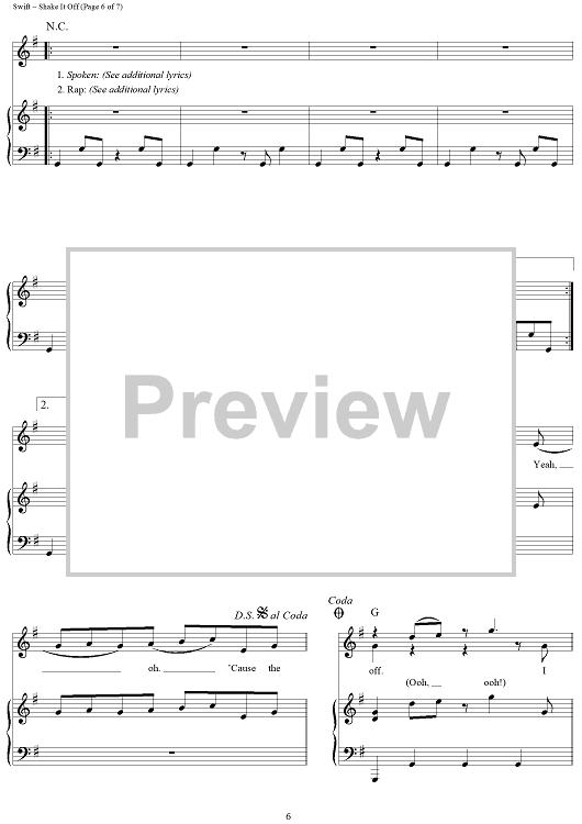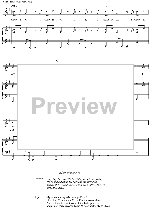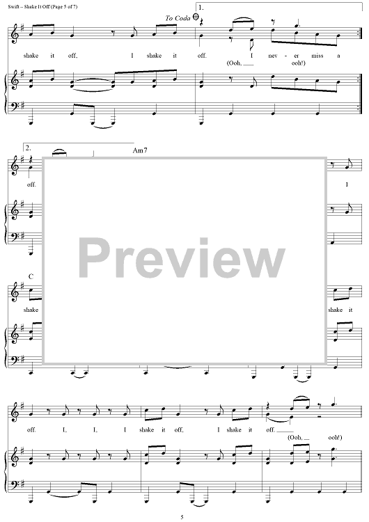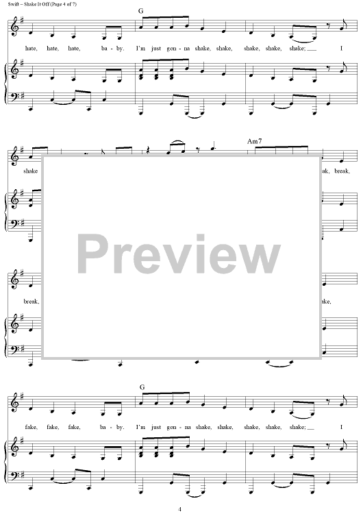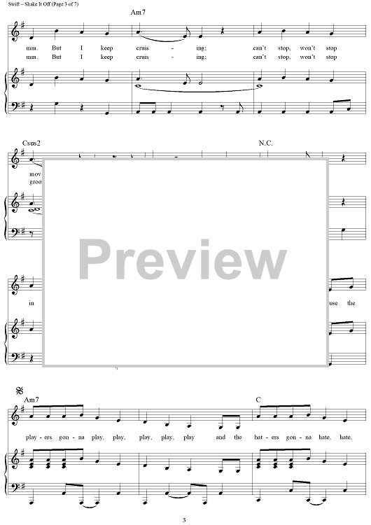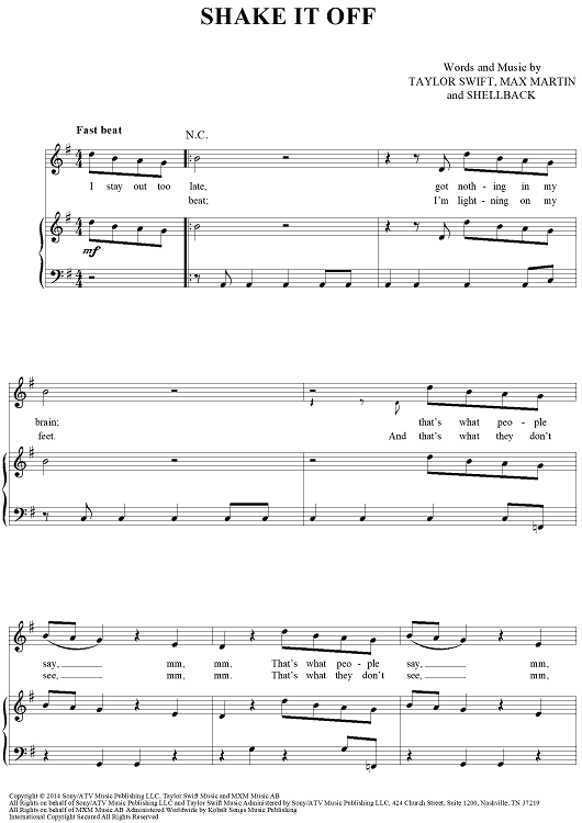 Digital Sheet Music for Shake It Off by Max Martin, Taylor Swift, Shellback scored for Piano/Vocal/Chords; id:443787