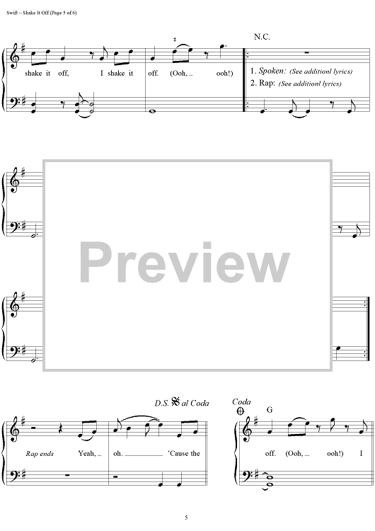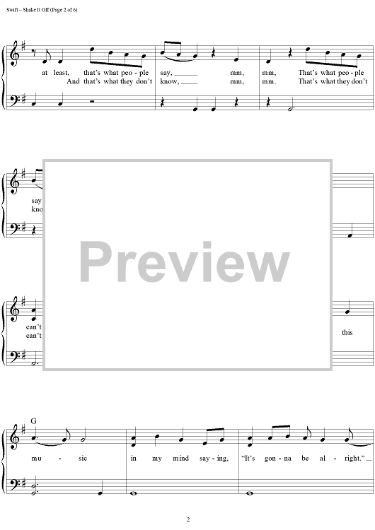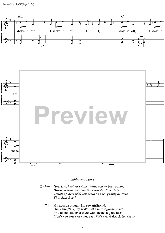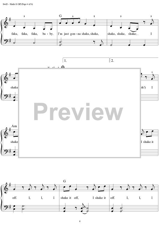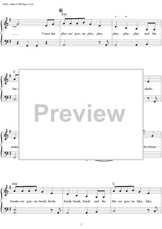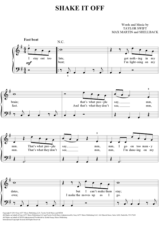 Digital Sheet Music for Shake It Off by Max Martin, Taylor Swift, Shellback scored for Easy Piano/Vocal/Chords; id:460110