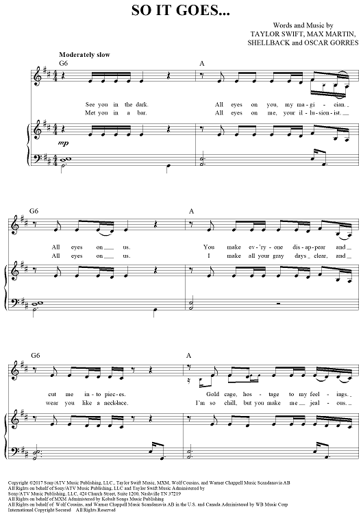 Digital Sheet Music for So It Goes by Max Martin, Taylor Swift, Shellback, Oscar Gorres scored for Piano/Vocal/Chords; id:465870