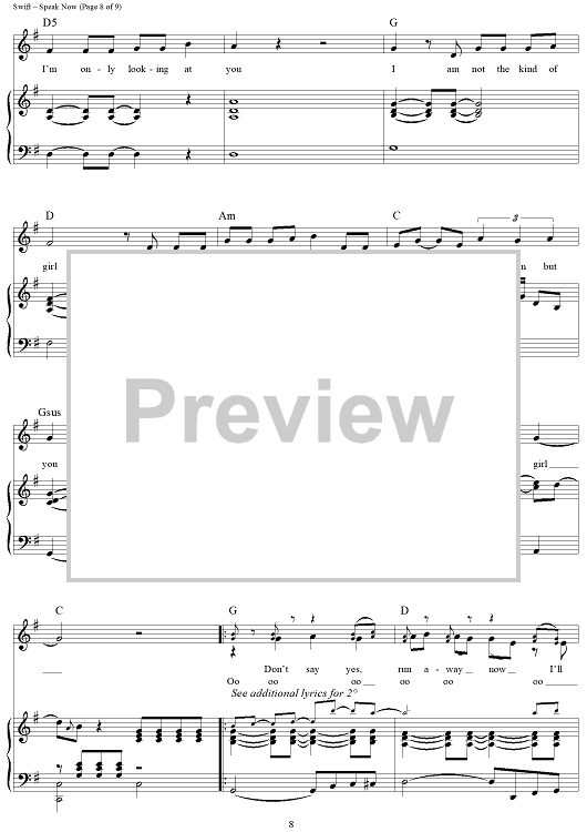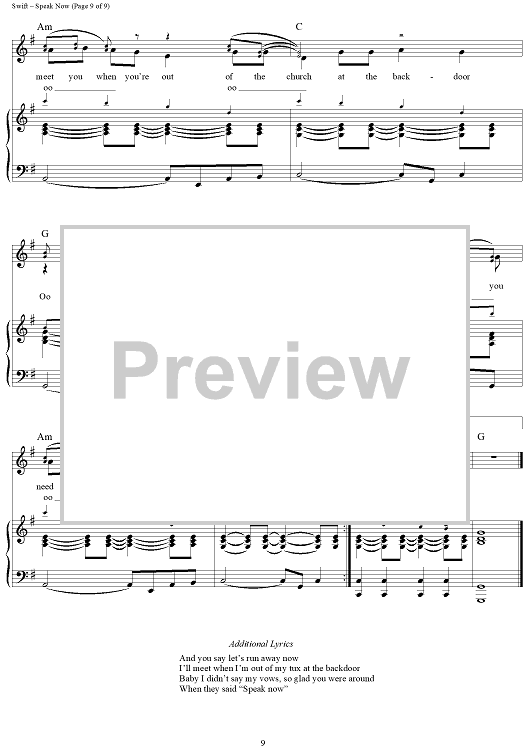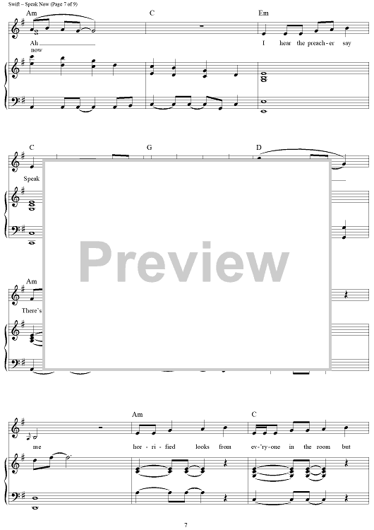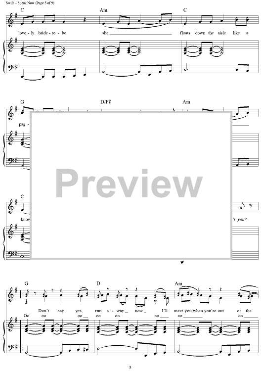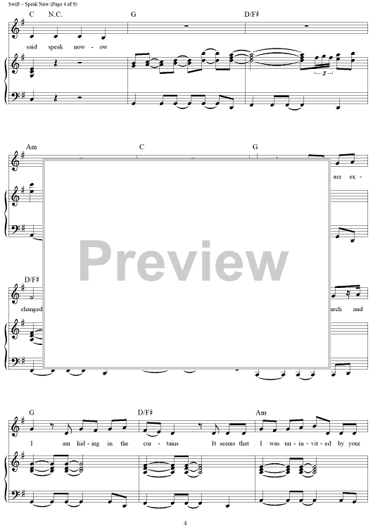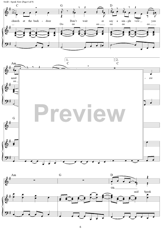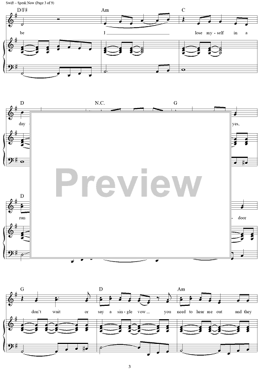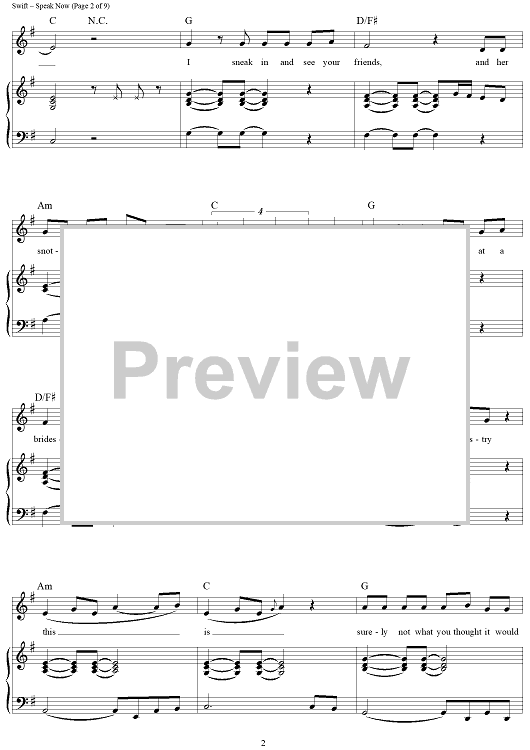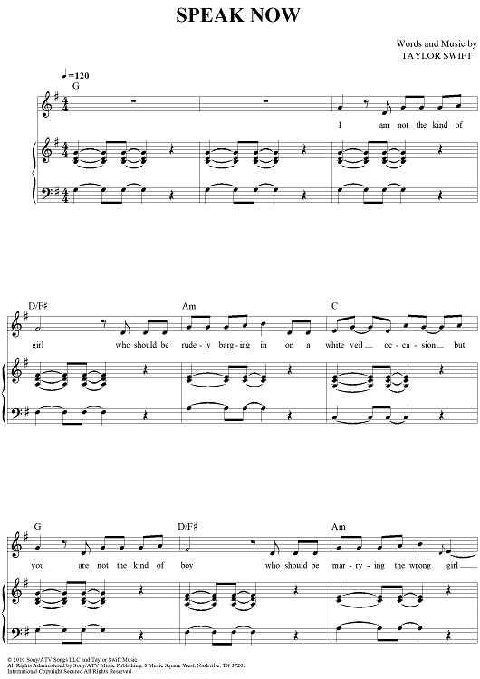 Digital Sheet Music for Speak Now by Taylor Swift scored for Piano/Vocal/Chords; id:417654