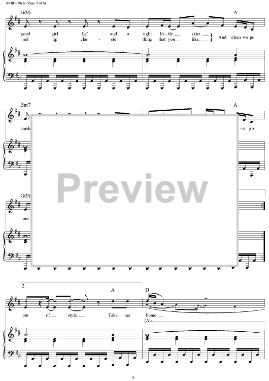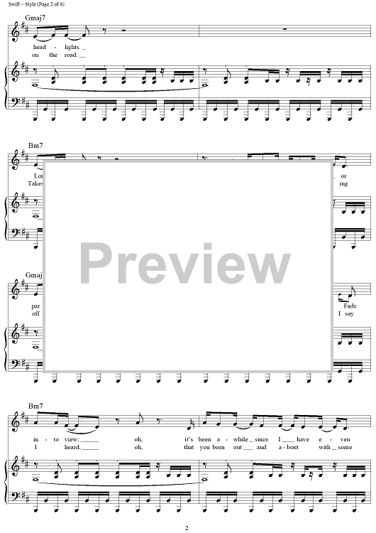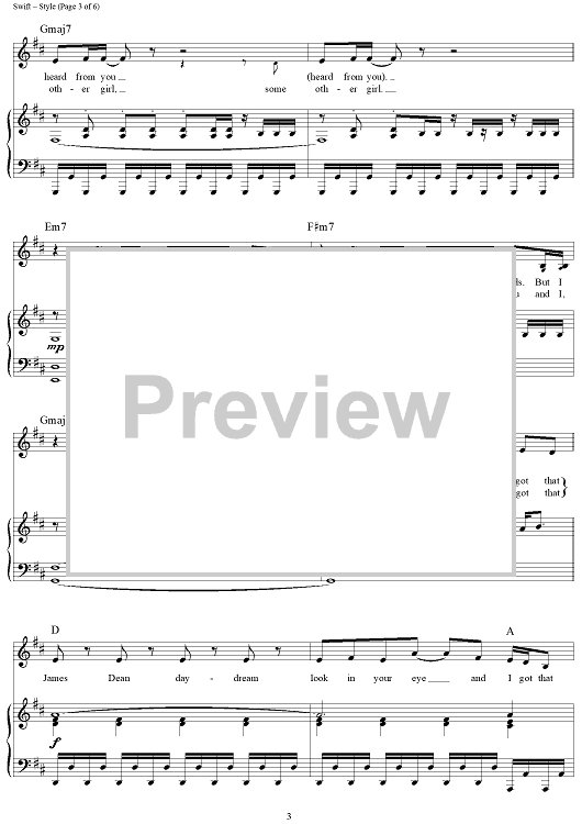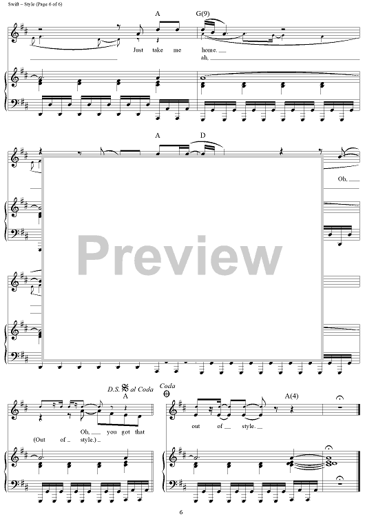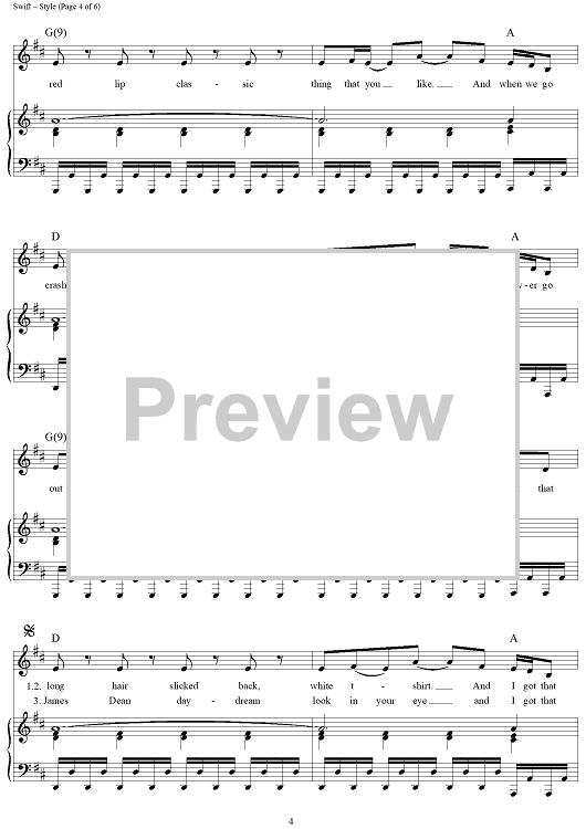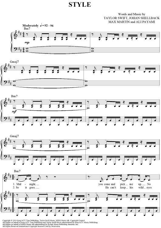 Digital Sheet Music for Style by Max Martin, Taylor Swift, Shellback, Ali Payami scored for Piano/Vocal/Chords; id:444656