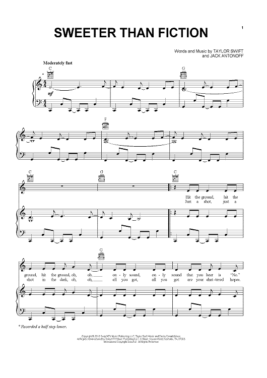 Digital Sheet Music for Sweeter Than Fiction by Taylor Swift, Jack Antonoff scored for Piano/Vocal/Chords; id:438342