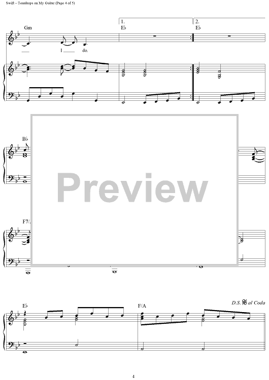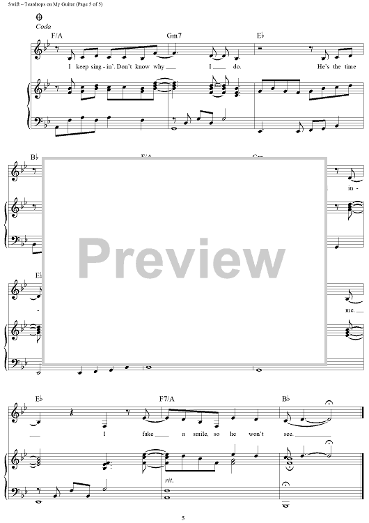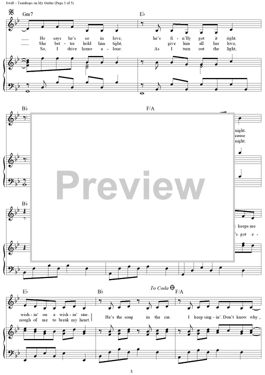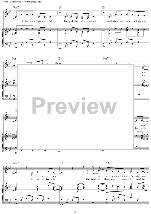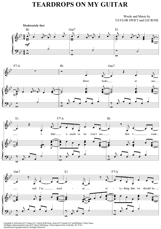 Digital Sheet Music for Teardrops on My Guitar by Liz Rose, Taylor Swift scored for Piano/Vocal/Chords; id:361942