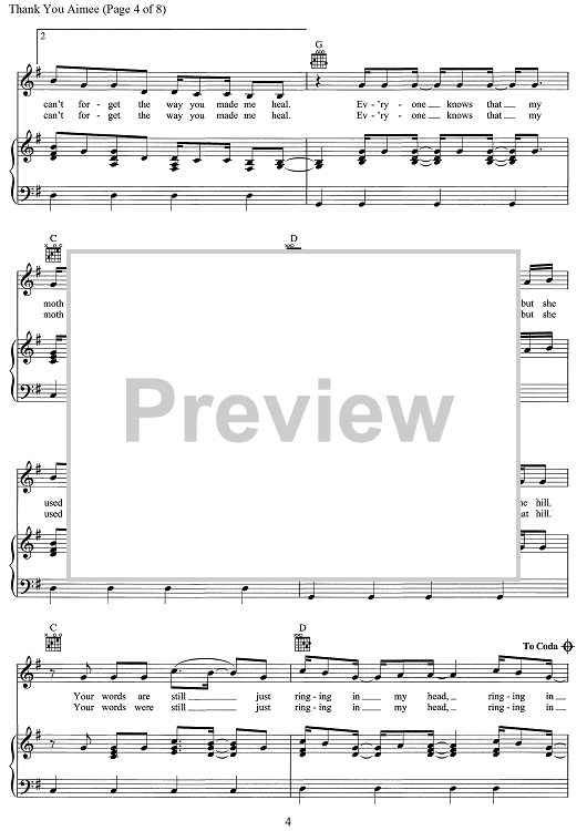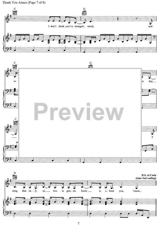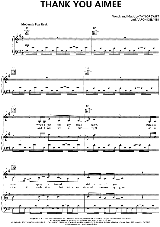 "Thank You Aimee" Sheet Music by Taylor Swift