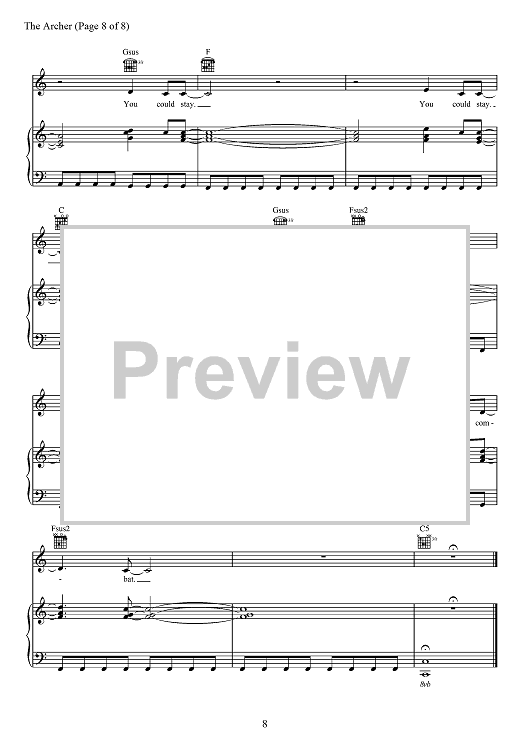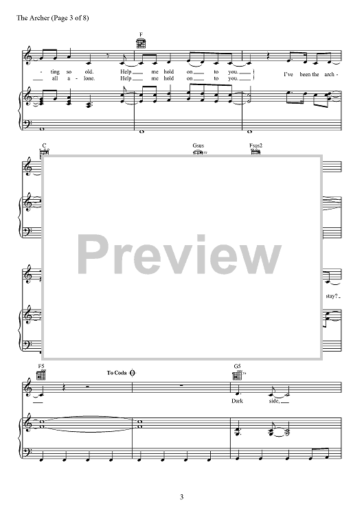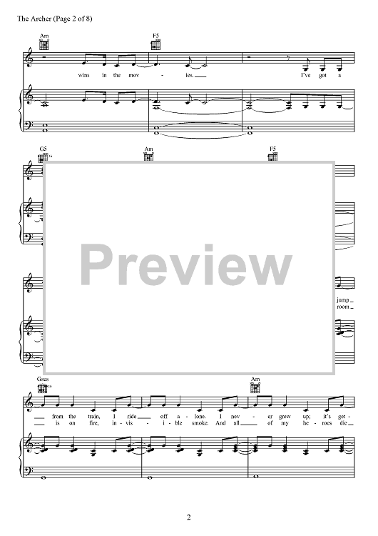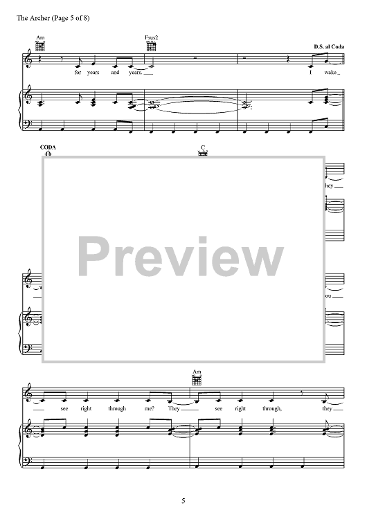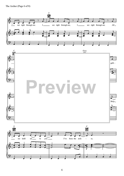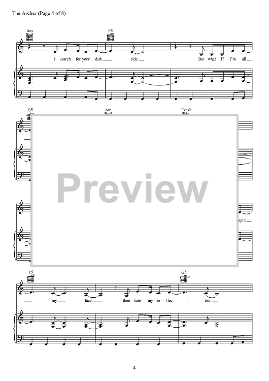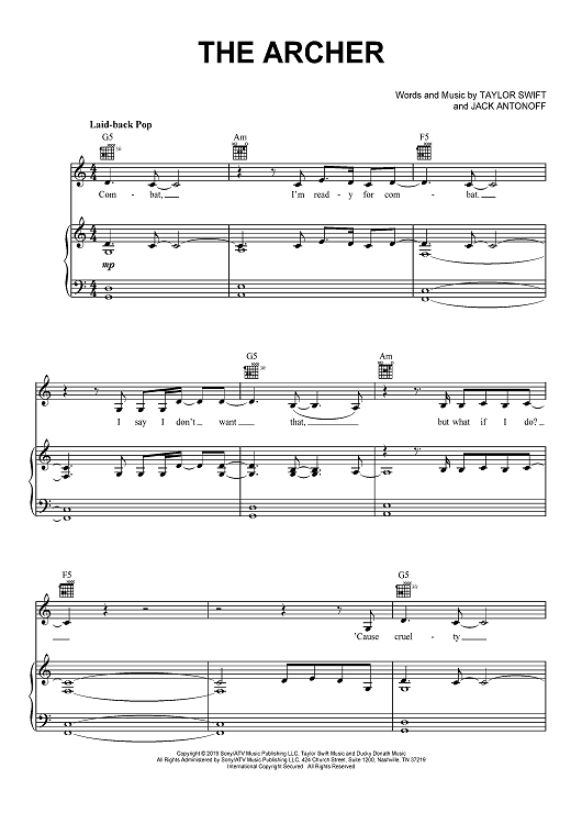 Digital Sheet Music for The Archer by Taylor Swift, Jack Antonoff scored for Piano/Vocal/Chords; id:467710