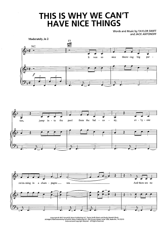 Digital Sheet Music for This Is Why We Can't Have Nice Things by Taylor Swift, Jack Antonoff scored for Piano/Vocal/Chords; id:466083