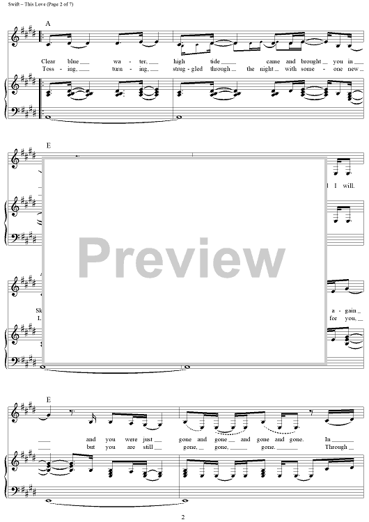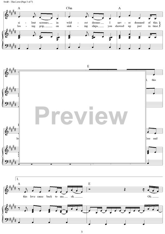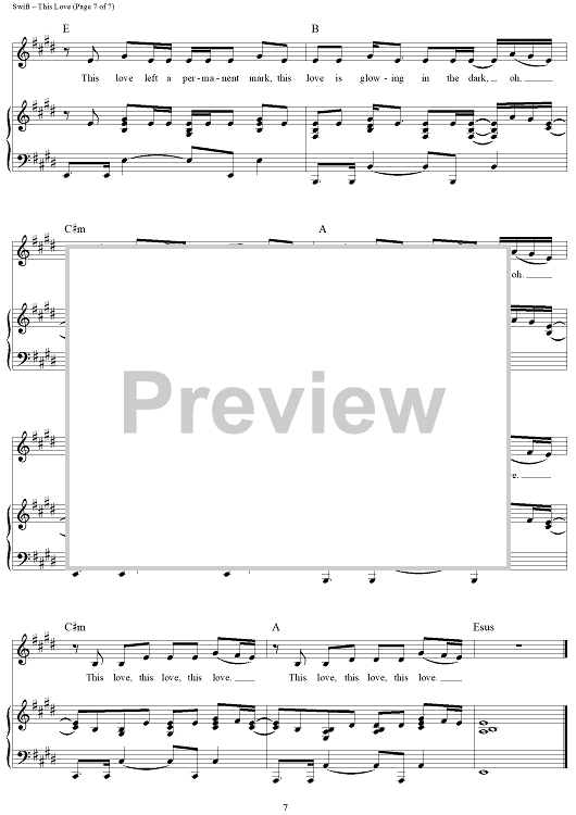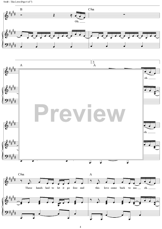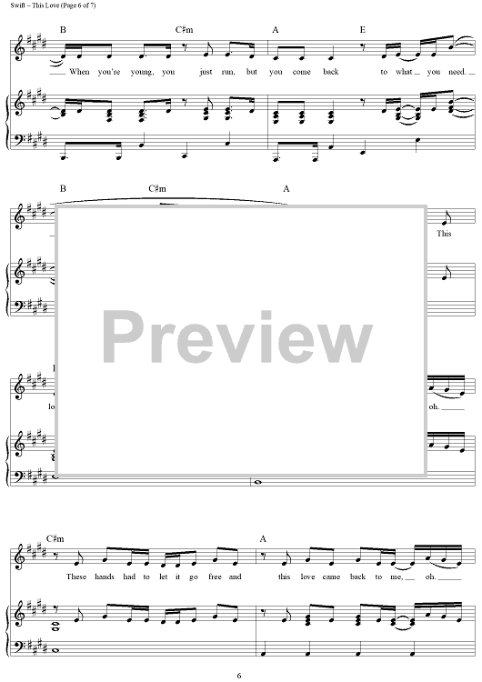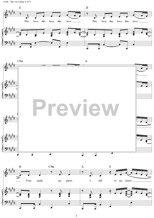Digital Sheet Music for This Love by Taylor Swift scored for Piano/Vocal/Chords; id:448092