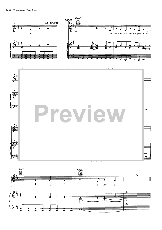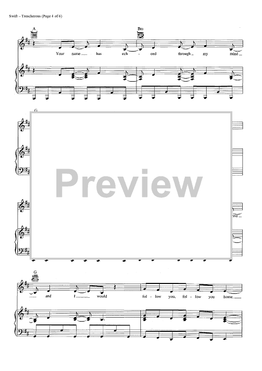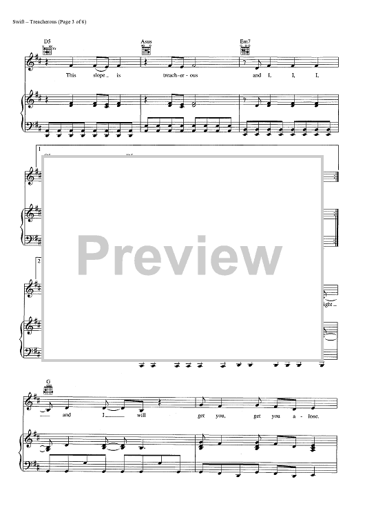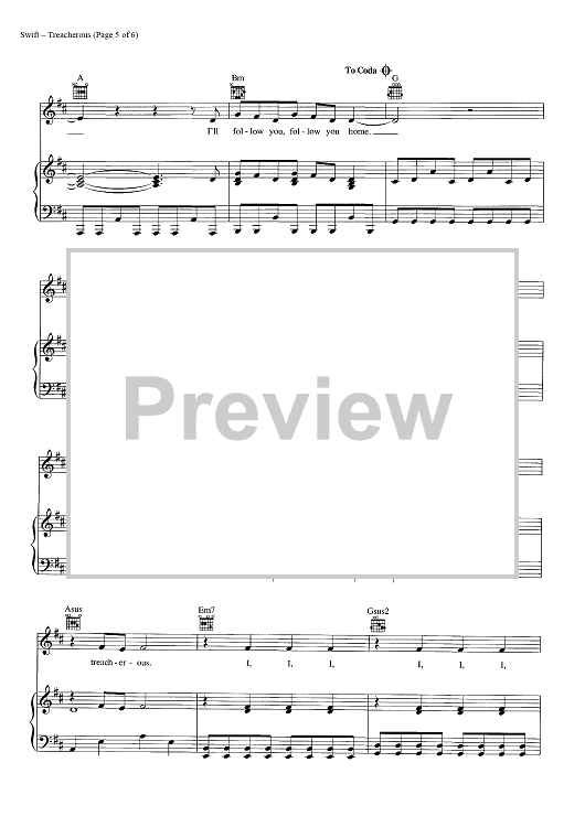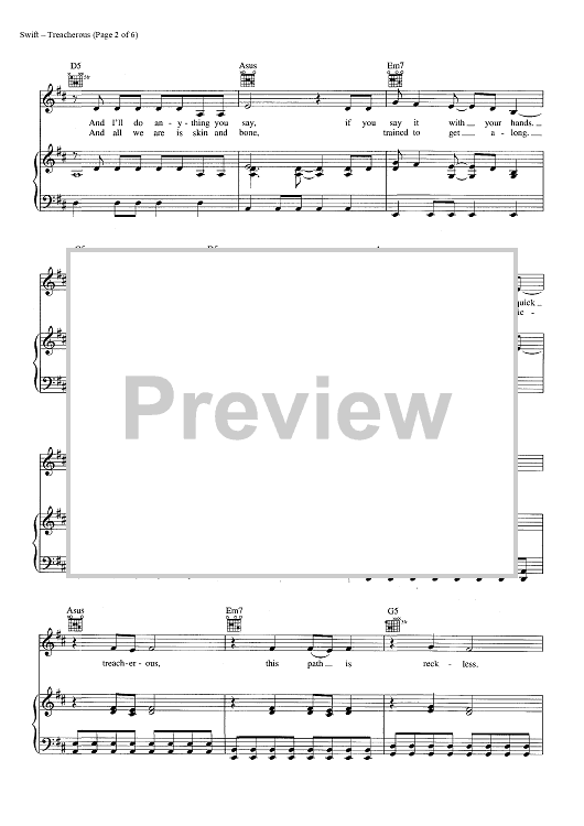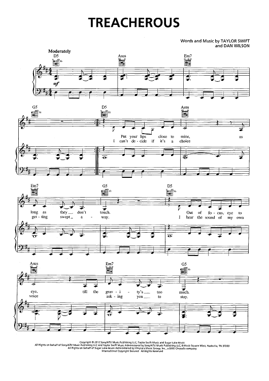 Digital Sheet Music for Treacherous by Dan Wilson, Taylor Swift scored for Piano/Vocal/Chords; id:445532