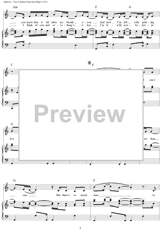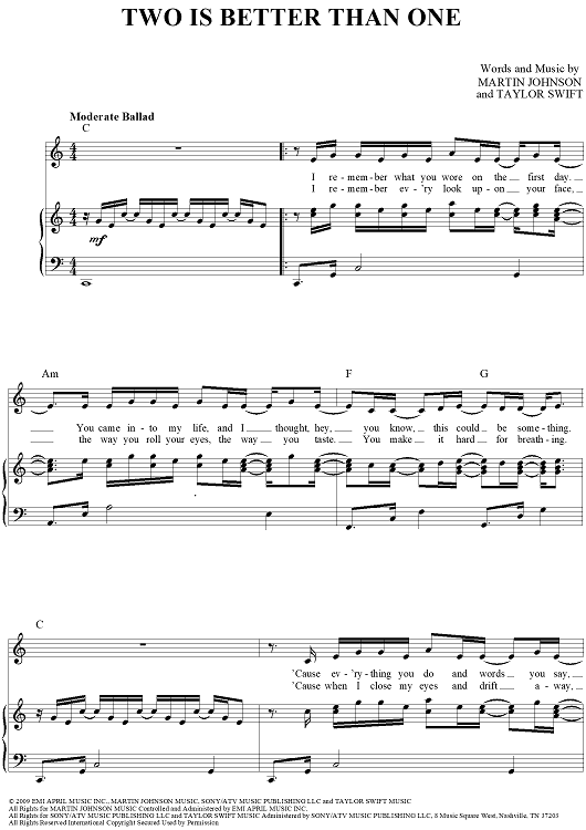 Digital Sheet Music for Two Is Better Than One by Boys Like Girls, Taylor Swift scored for Piano/Vocal/Chords; id:410137