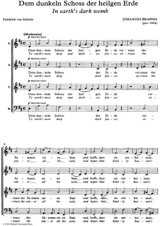 Digital Sheet Music for Dem dunkeln Schoß der heilgen Erde by Johannes Brahms scored for SATB Choir; id:336825