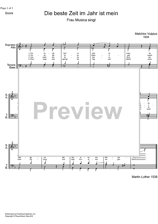Digital Sheet Music for Die beste Zeit im Jahr ist mein by Melchior Vulpius scored for SATB Choir; id:325884