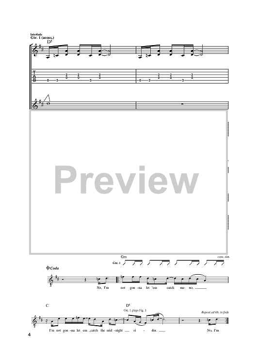 Digital Sheet Music for Midnight Rider by Gregg Allman, The Allman Brothers Band, Robert Payne scored for Guitar Tab; id:387155