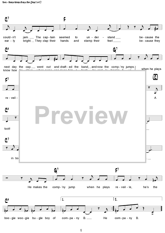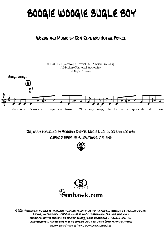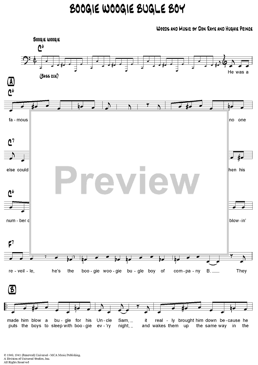 Digital Sheet Music for Boogie Woogie Bugle Boy by The Andrews Sisters, Don Raye, Hughie Prince scored for Lead Sheet; id:307540