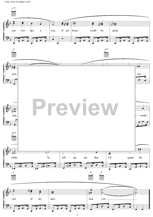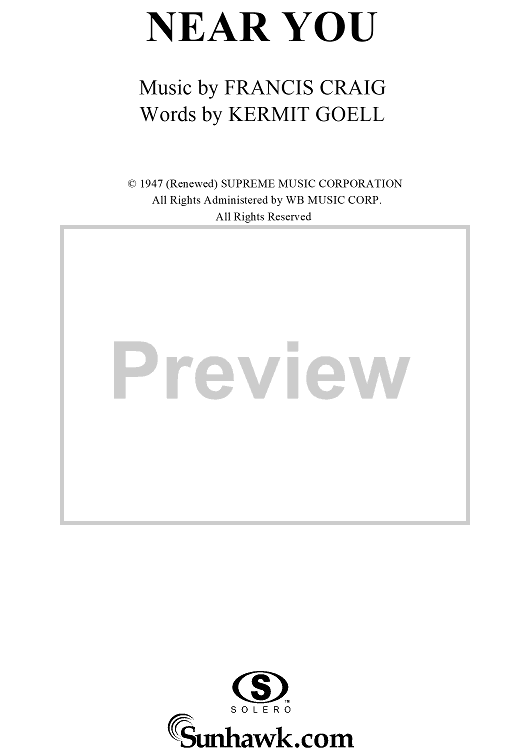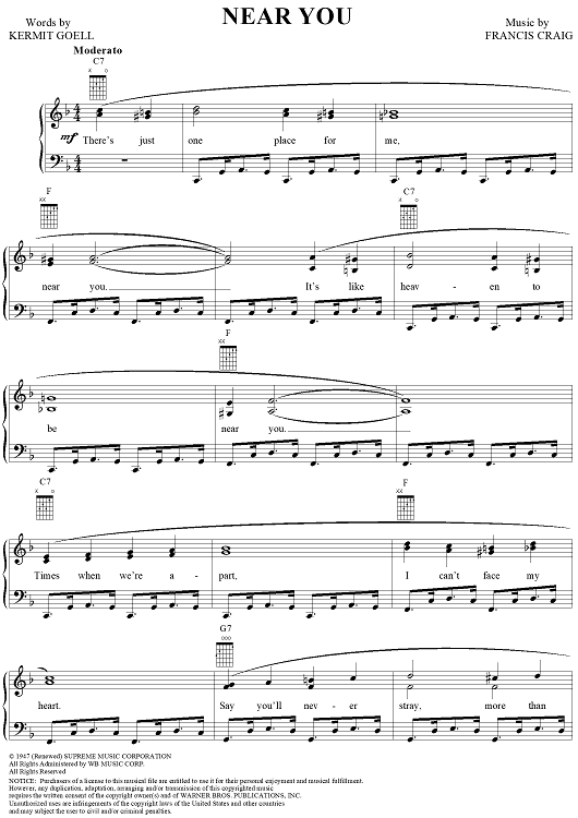 Digital Sheet Music for Near You by The Andrews Sisters, Francis Craig, Kermit Goell scored for Piano/Vocal/Chords; id:116268