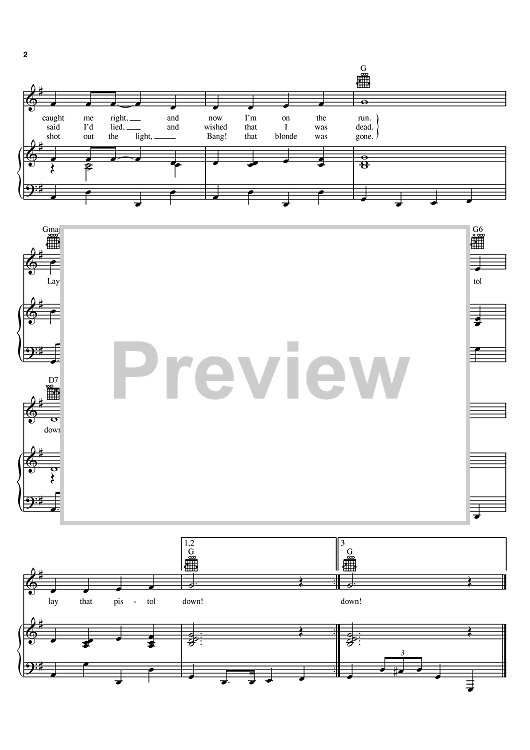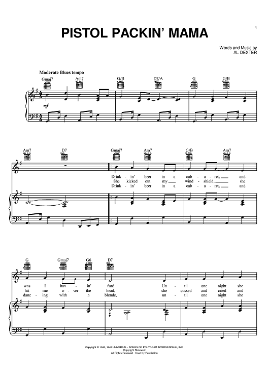Digital Sheet Music for Pistol Packin' Mama by Bing Crosby, The Andrews Sisters, Gene Vincent, Al Dexter scored for Piano/Vocal/Chords; id:381492