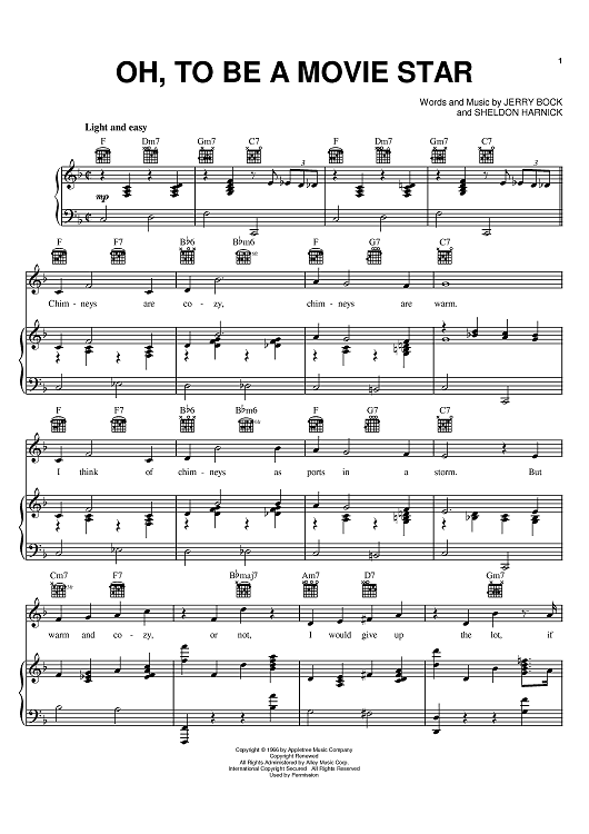 Digital Sheet Music for Oh, To Be A Movie Star by Jerry Bock, Sheldon Harnick scored for Piano/Vocal/Chords; id:394545