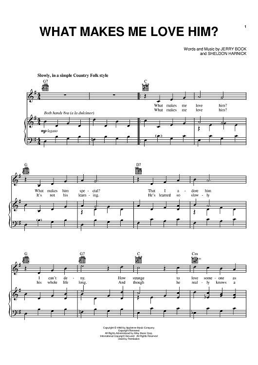 Digital Sheet Music for What Makes Me Love Him? by Jerry Bock, Sheldon Harnick scored for Piano/Vocal/Chords; id:394574