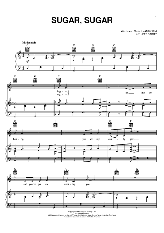Digital Sheet Music for Sugar, Sugar by Jeff Barry, Bob Marley, Wilson Pickett, The Archies, Andy Kim, Ike & Tina Turner scored for Piano/Vocal/Chords; id:384237