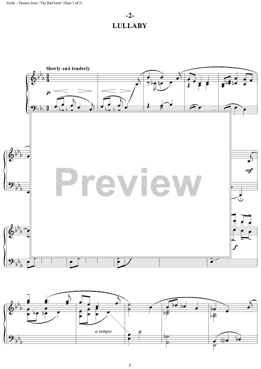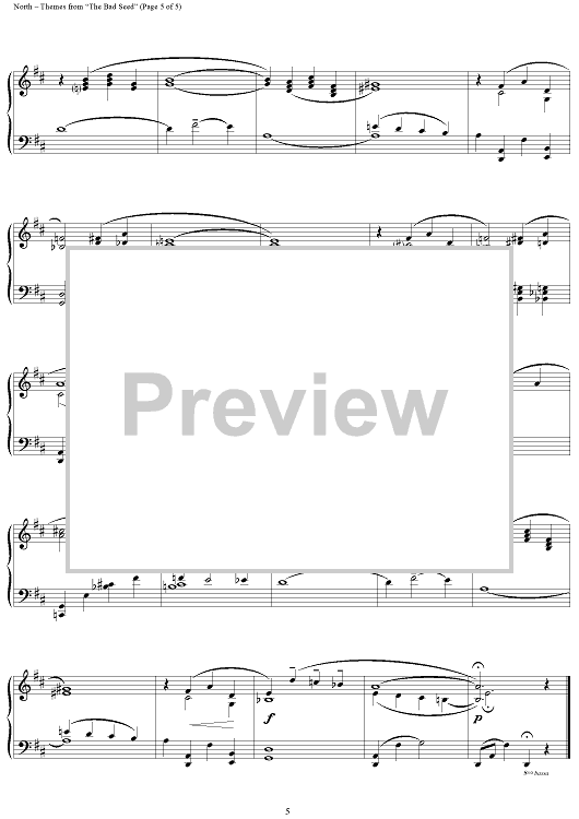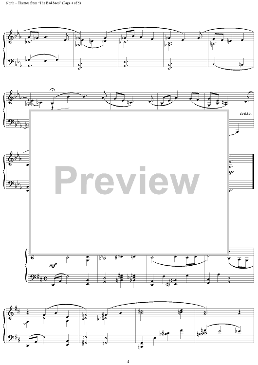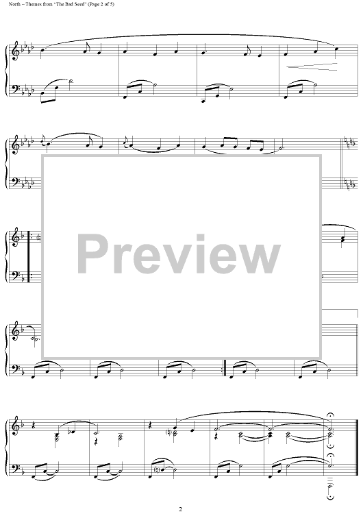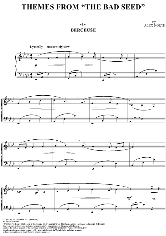 Digital Sheet Music for Themes from The Bad Seed by Alex North scored for Piano Solo; id:131756