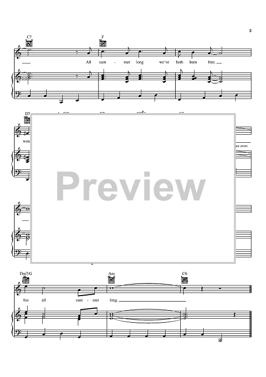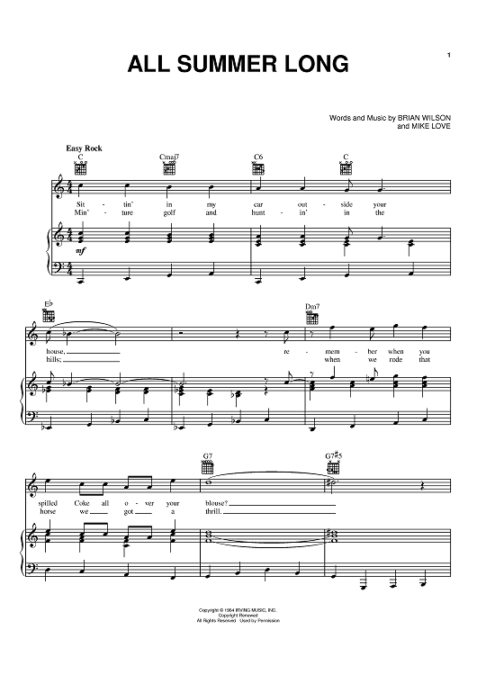 Digital Sheet Music for All Summer Long by Brian Wilson, The Beach Boys, Mike Love scored for Piano/Vocal/Chords; id:367371