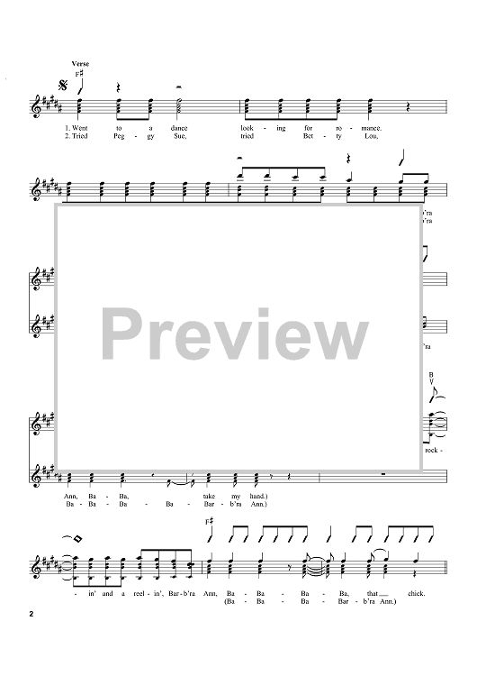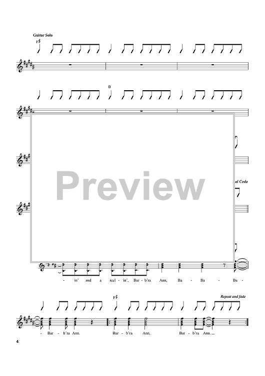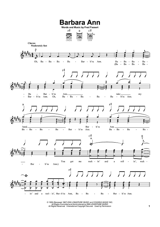 Digital Sheet Music for Barbara Ann by The Beach Boys, Fred Fassert, The Regents scored for Lead Sheet with Guitar Grids; id:372120