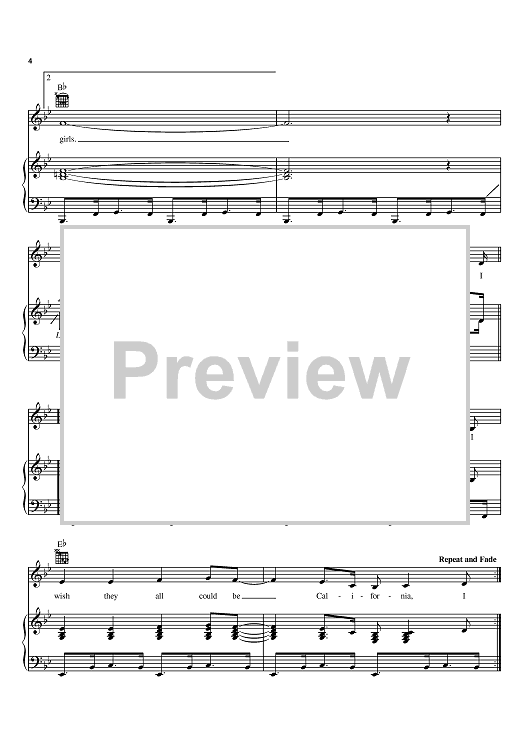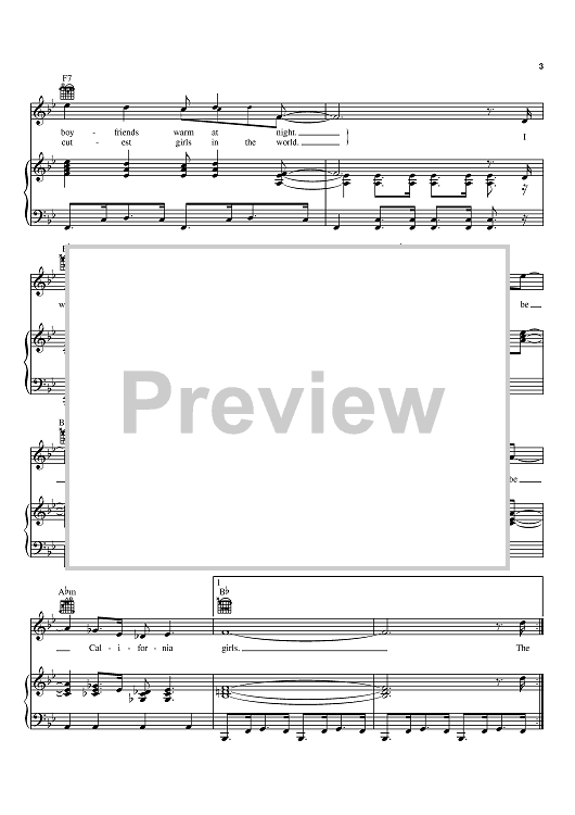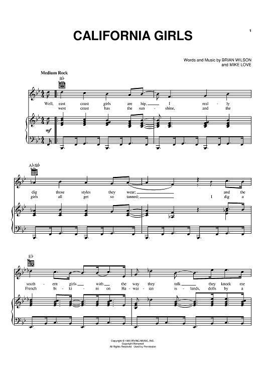 Digital Sheet Music for California Girls by Brian Wilson, The Beach Boys, David Lee Roth, Mike Love scored for Piano/Vocal/Chords; id:368520