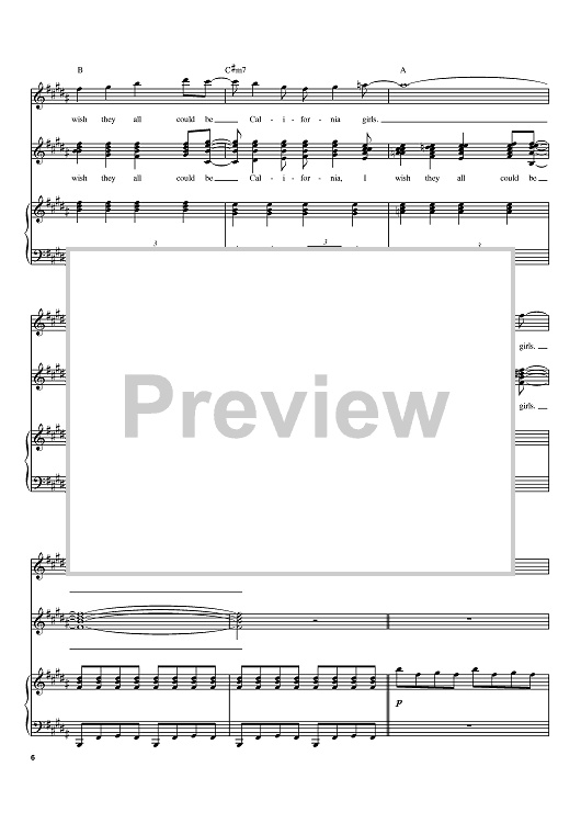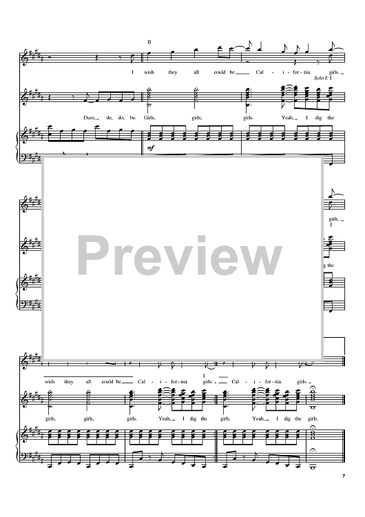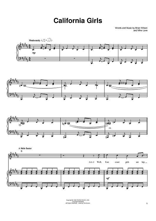 Digital Sheet Music for California Girls by Brian Wilson, The Beach Boys, David Lee Roth, Mike Love scored for Piano/Vocal/Chords; id:371784