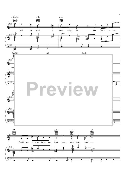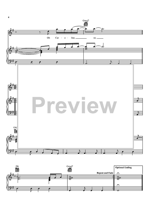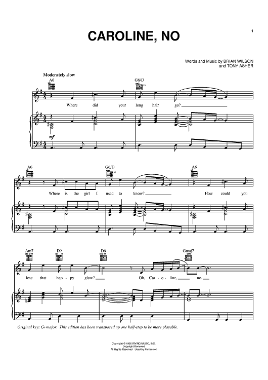 Digital Sheet Music for Caroline, No by Brian Wilson, The Beach Boys, Tony Asher scored for Piano/Vocal/Chords; id:367372