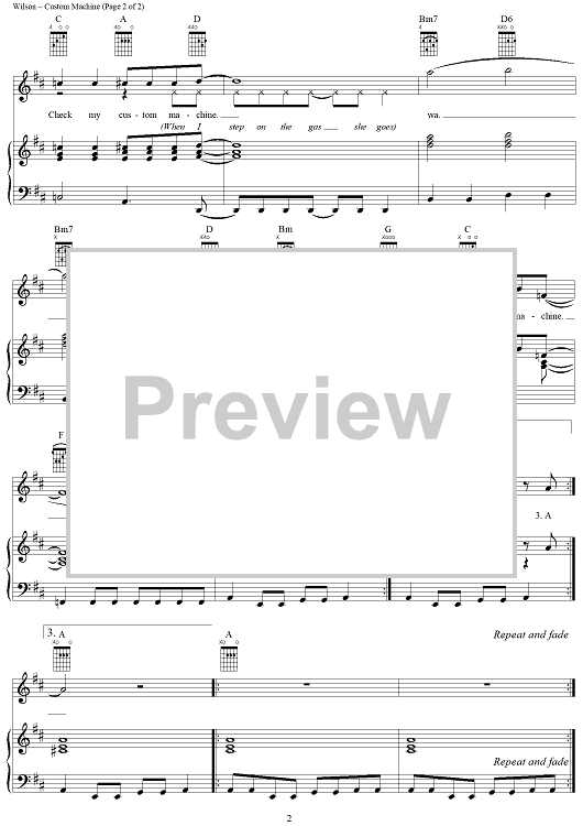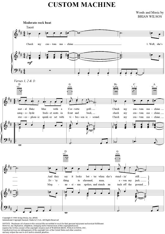 Digital Sheet Music for Custom Machine by Brian Wilson, The Beach Boys scored for Piano/Vocal/Chords; id:264060