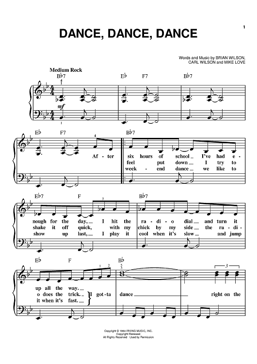 Digital Sheet Music for Dance, Dance, Dance by Brian Wilson, The Beach Boys, Mike Love, Carl Wilson scored for Easy Piano; id:367321