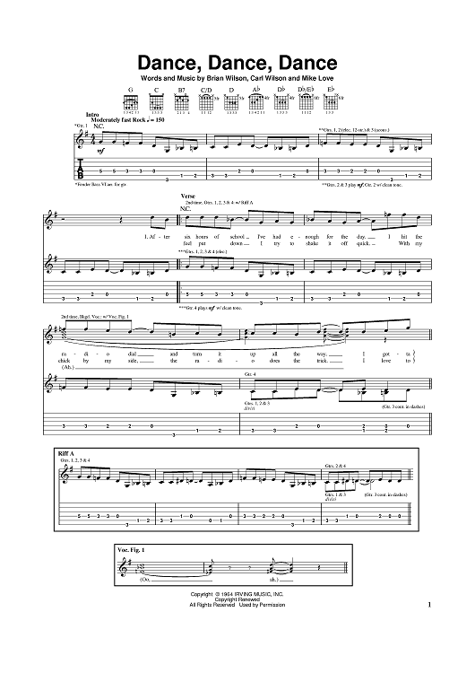 Digital Sheet Music for Dance, Dance, Dance by Brian Wilson, The Beach Boys, Mike Love, Carl Wilson scored for Guitar Tab; id:367652