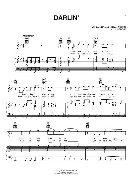 Digital Sheet Music for Darlin' by Brian Wilson, The Beach Boys, Mike Love scored for Piano/Vocal/Chords; id:367373